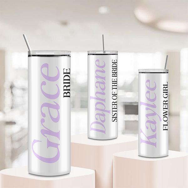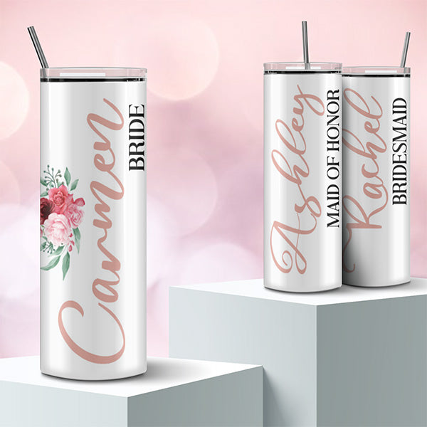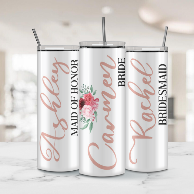 Custom Bridal Party Tumblers for Bride Bridesmaid Maid of Honor and Flower Girl