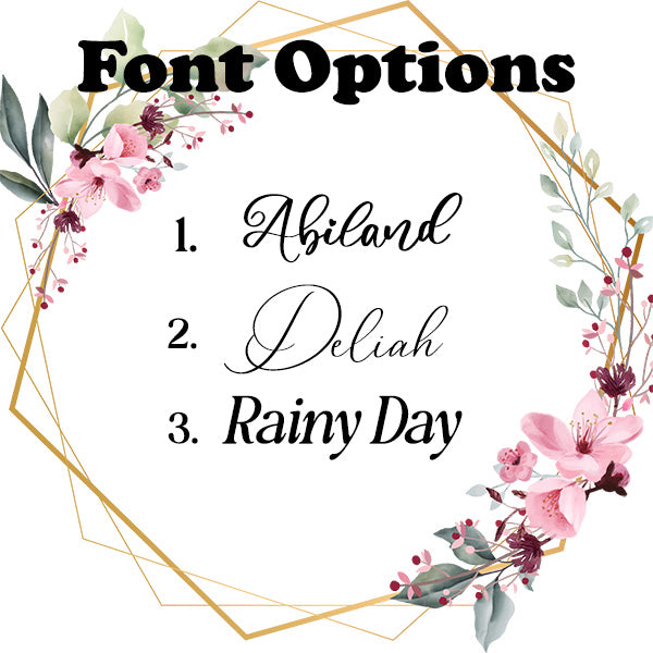 Choose from 3 font styles and from our color options, or send us one of your own to match with your color theme. It offers a minimalist design, simple but elegant.