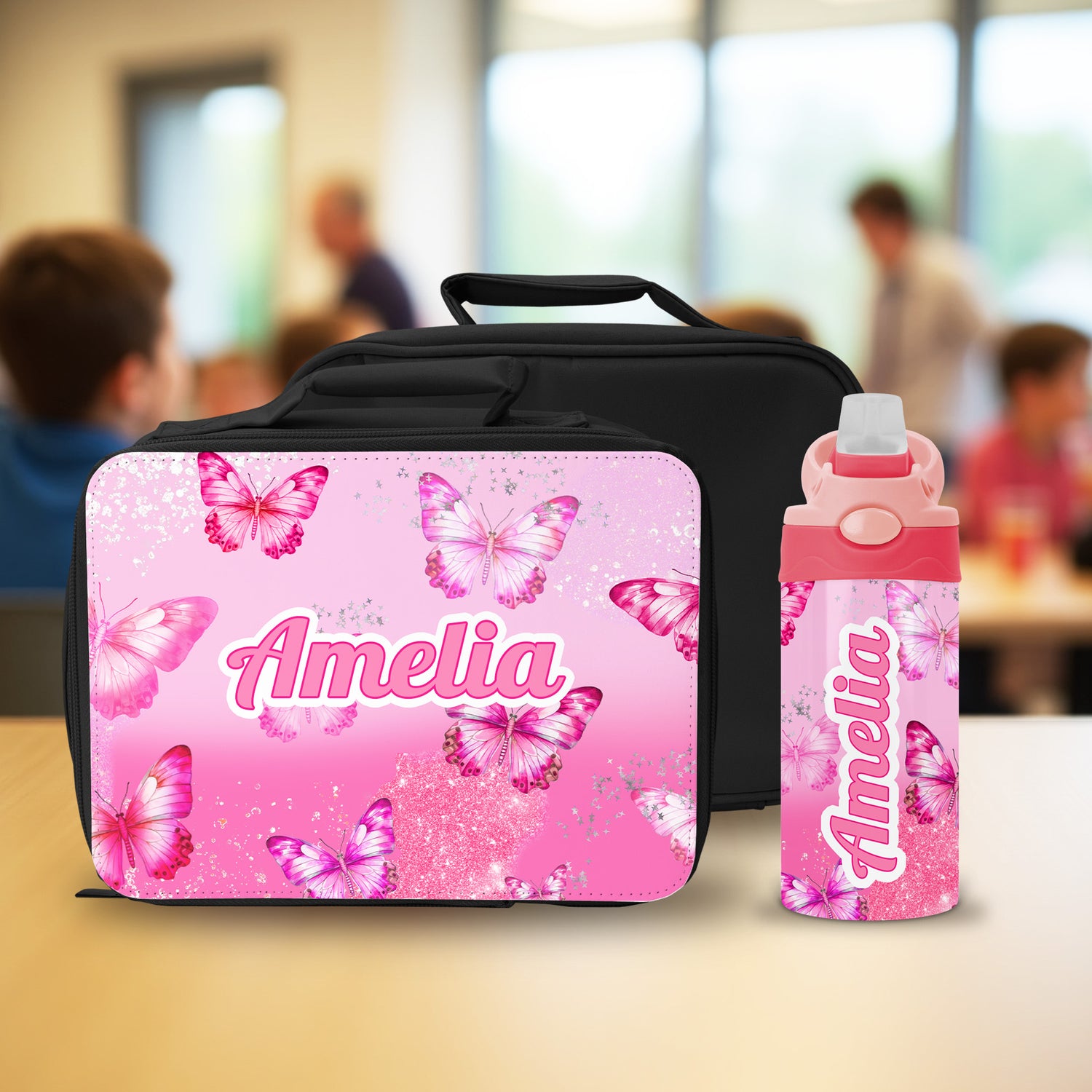 Custom Butterfly Back to School Gift, Lunch Box and Water Bottle Set for Girls