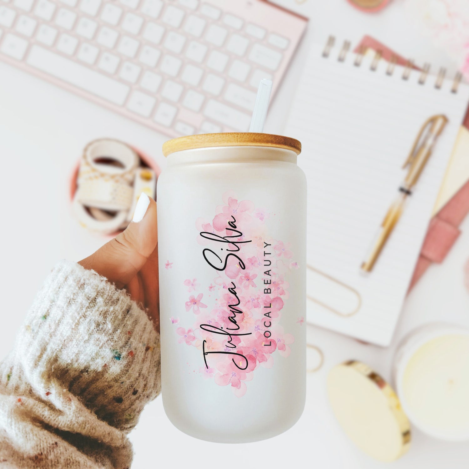 Cute Custom Business Logo Glass Tumbler for Corporate Swag and Small Businesses