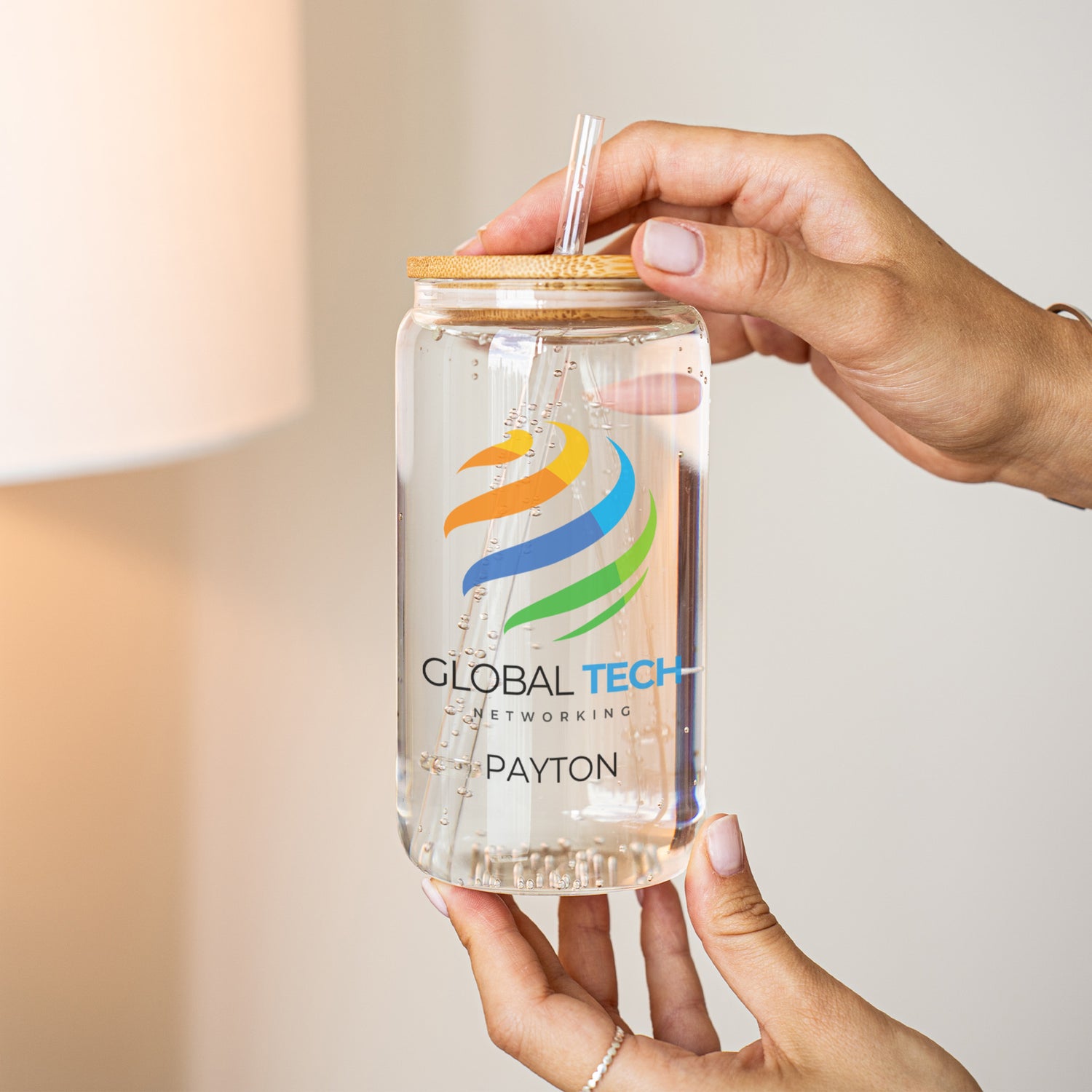 They're easy to maneuver and super stylish. Gift these super stylish tumblers to your employees as an appreciation gift or to promote your business. Perfect for business conventions, these elegant glass jars are designed with your personalized logo to leave a lasting impression. Upgrade your business game with these chic and cute glass cans, ideal for showcasing your brand in a sophisticated way.