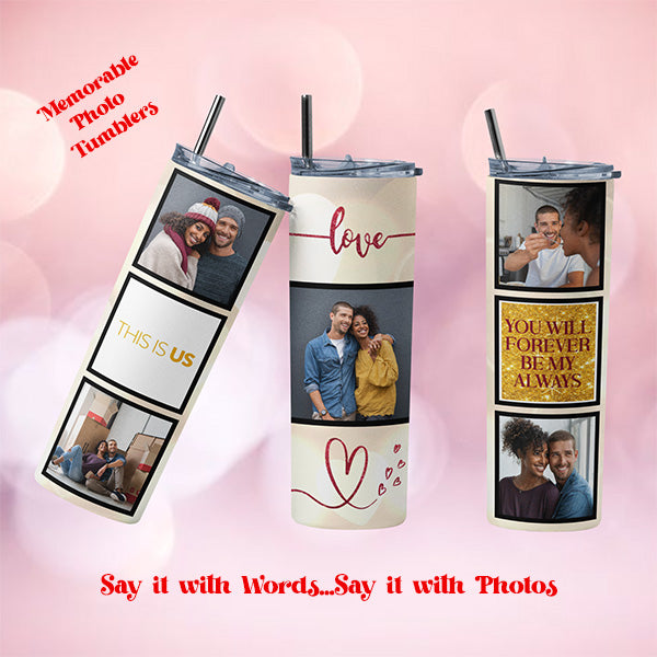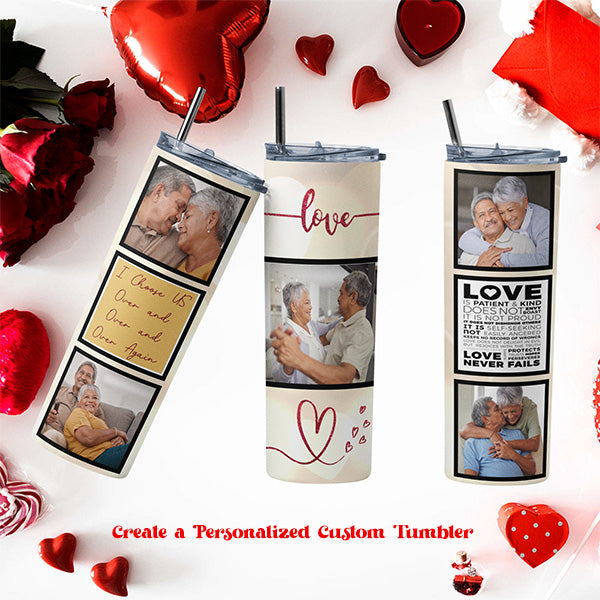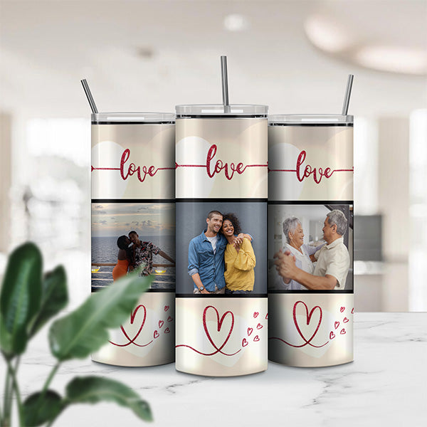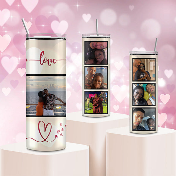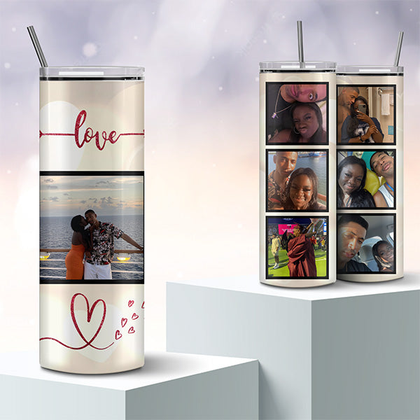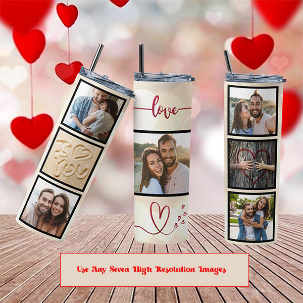 Custom Romantic Photo Tumbler with 7 Photos Gift for Valentine's Day
