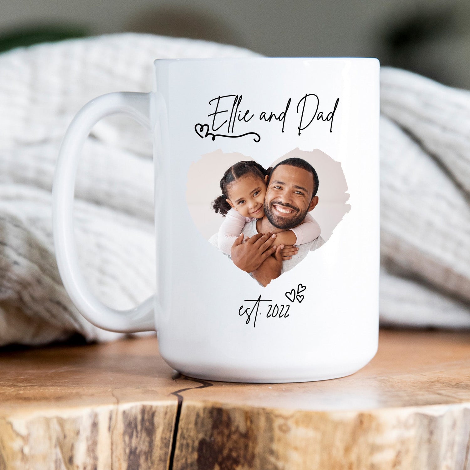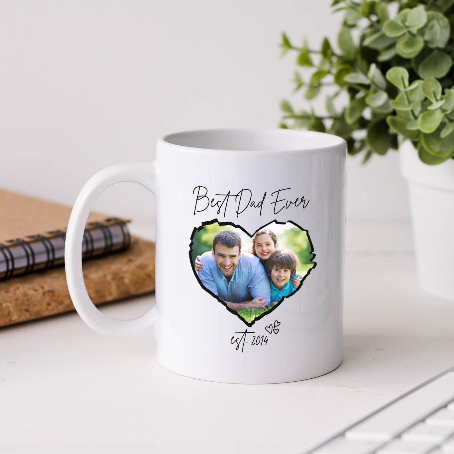 This cute custom photo mug for Father’s Day is the perfect personalized gift for dad. Add a name, year, and favorite photo to create a custom coffee mug that’s ideal for Father’s Day gifts, birthday gifts for him, or Christmas presents for dad.