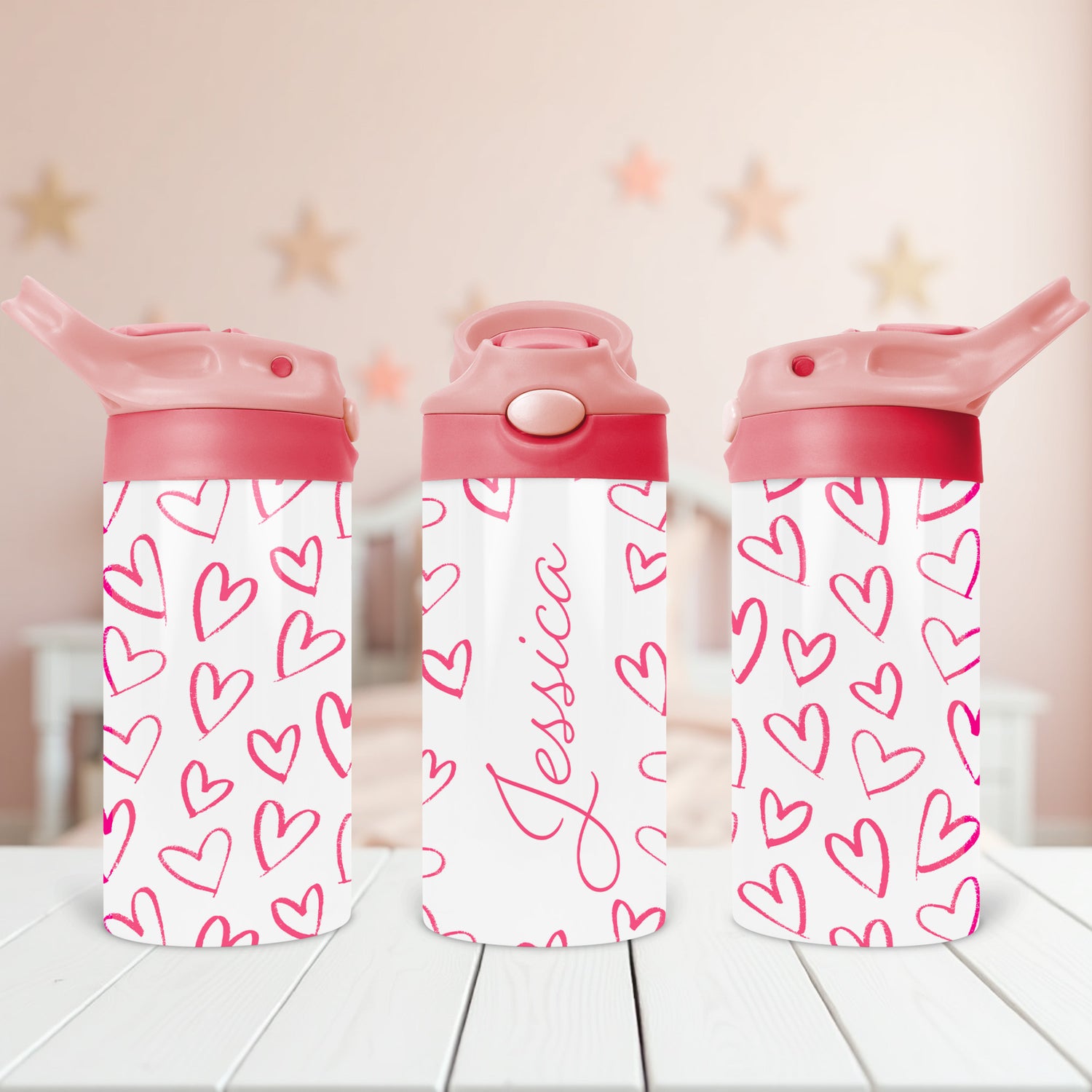 Great for everyday use, this heart-themed kids water bottle is ideal for lunchboxes, backpacks, and classroom desks. It’s a favorite among parents looking for personalized school supplies, custom water bottles for kids, or unique name gifts for daughters.