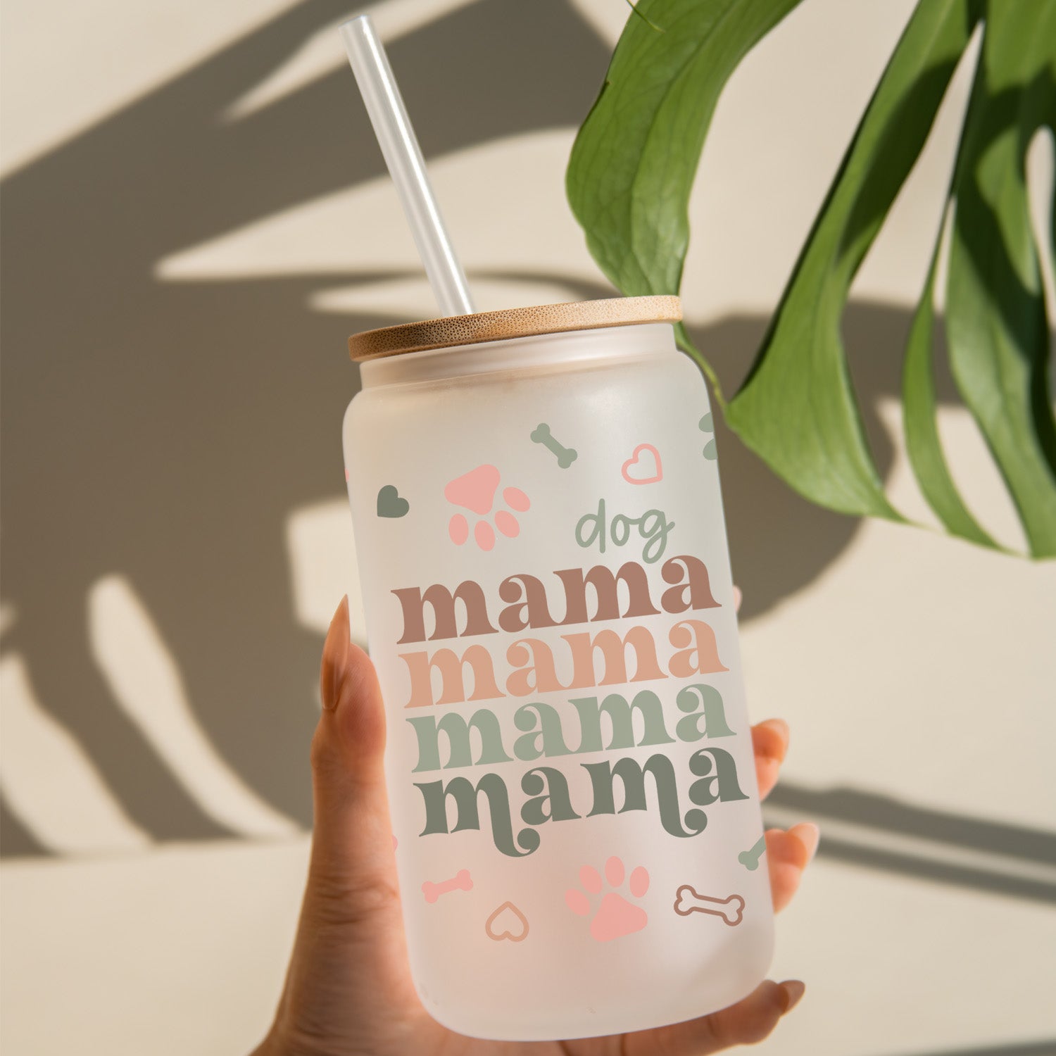 Neutral Color Dog Mama Frosted Iced Coffee Glass Tumbler - Frosted is backordered and will ship as soon as it is back in stock.