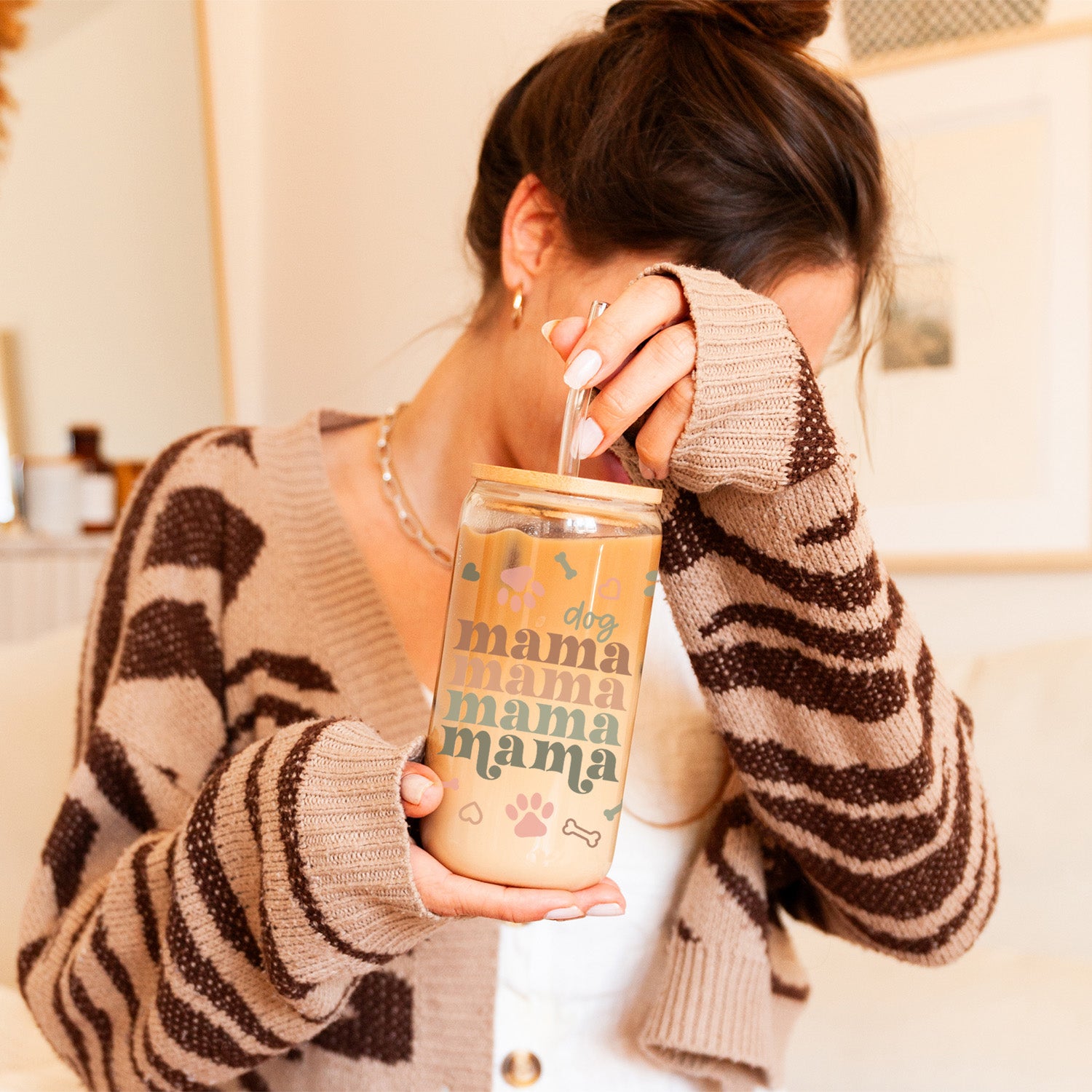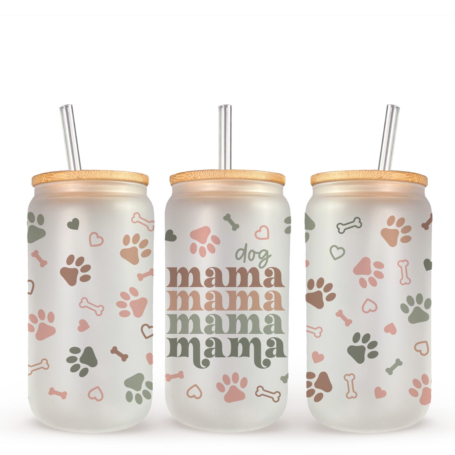 Neutral Color Dog Mama Frosted Iced Coffee Glass Tumbler