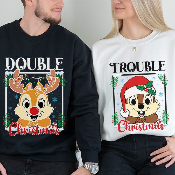 Cute Matching Double Trouble Christmas Sweatshirt for All Ages