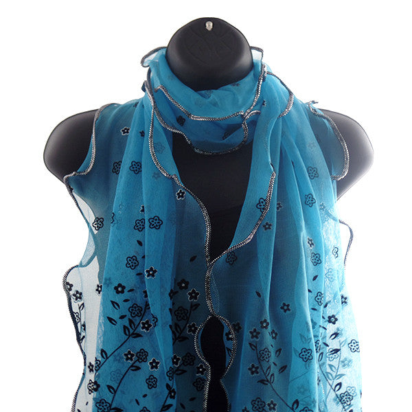 Elegant Flower Shaped Blue Womens Scarf Wrap