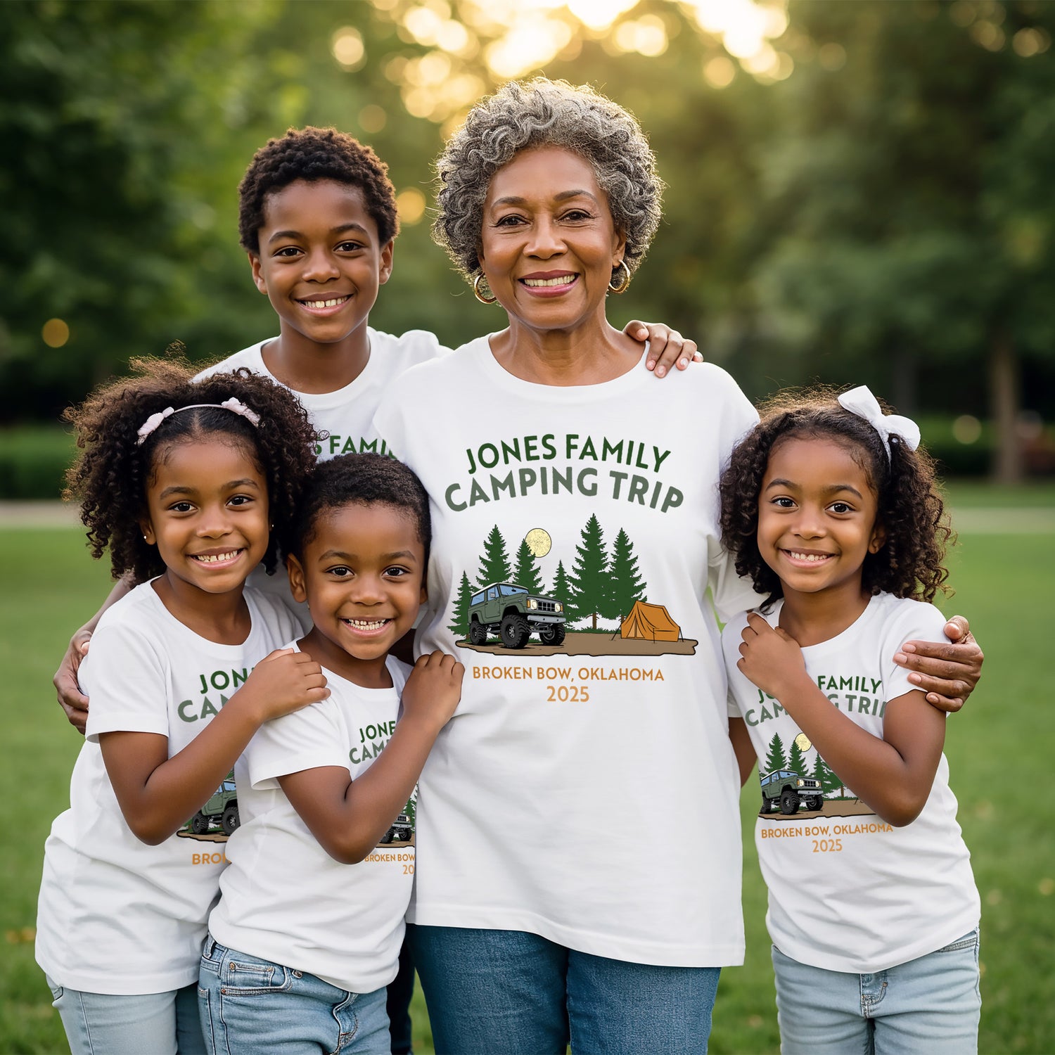 Make your next adventure unforgettable with our Custom Family Camping Trip Shirts and Matching Family Vacation T-Shirts! Whether you're heading out on a family road trip or exploring a national park, these personalized shirts are a fun way to keep your family connected.