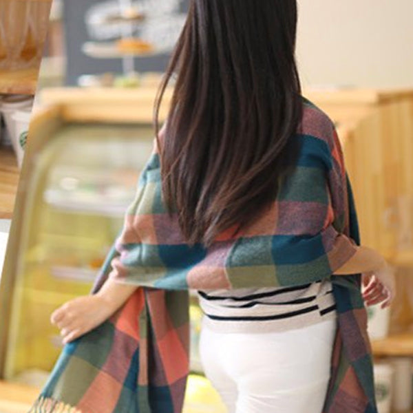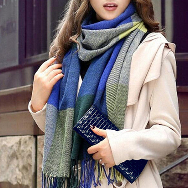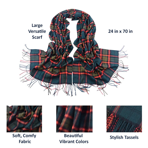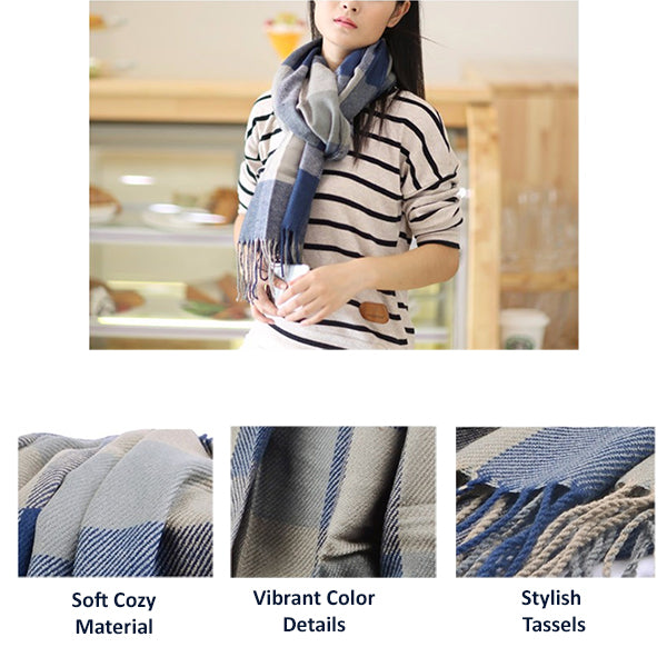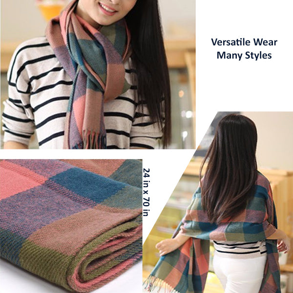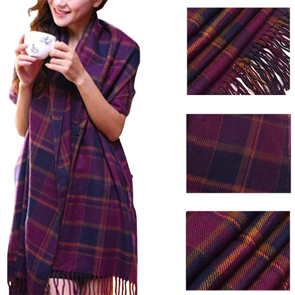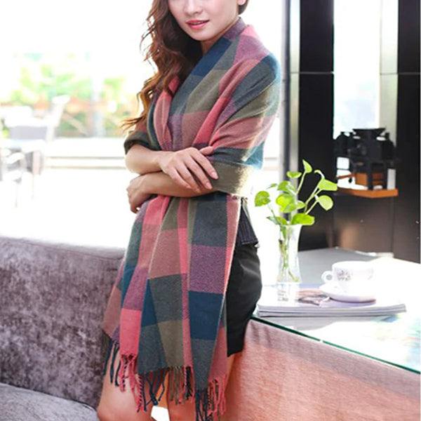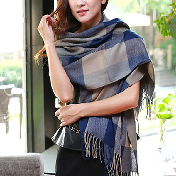 Fashionable Womens Large Plaid Wool Scarves for Fall and Winter