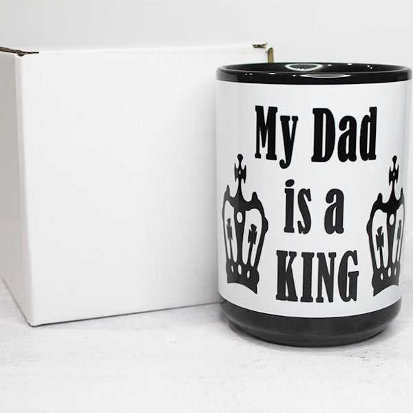 Our unique design comes with two crowns on the side of the cup with "My Dad is a King" down the middle. This design is printed in the USA and its black and white look makes the cup very sleek and sophisticated