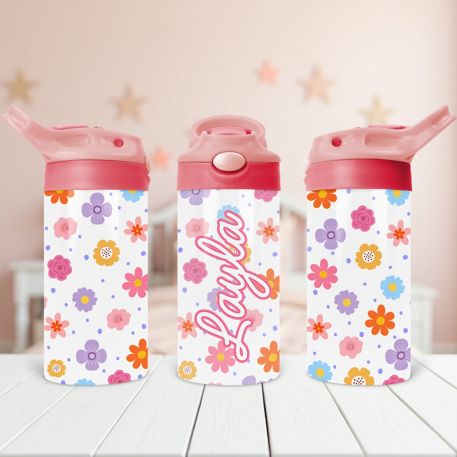 Floral Flip Lid Tumbler Water Bottle for Girls, Personalized Back to School Gifts