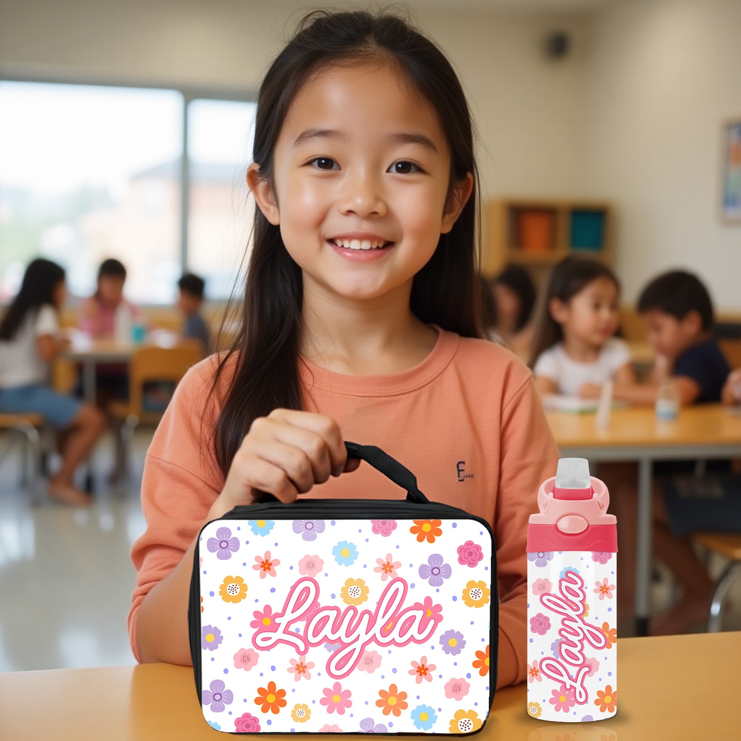 Whether you're shopping for a girl's lunch box and water bottle set, a flower lunch box for school, or a customized lunch box and water bottle for kids, this set checks every box. The floral theme is playful and sweet, making it a favorite for kids who love nature-inspired designs.