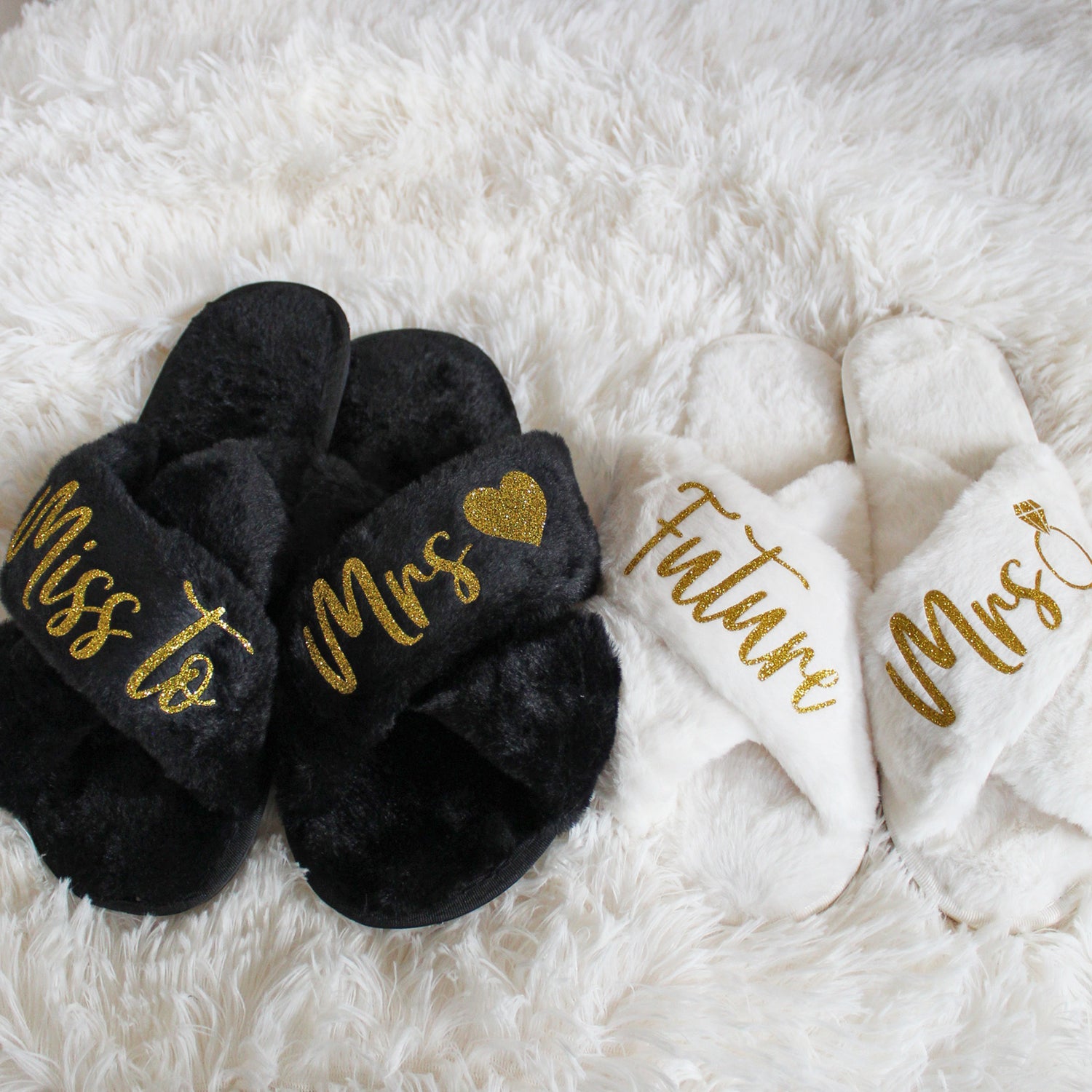 Bride-to-Be Gift, Miss to Mrs Slippers Engagement Gift for Her, Bridal Shower Gift Slippers