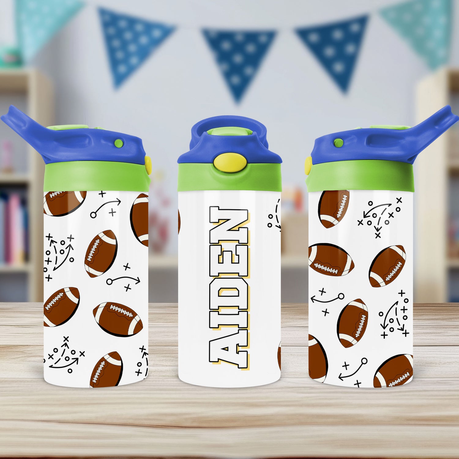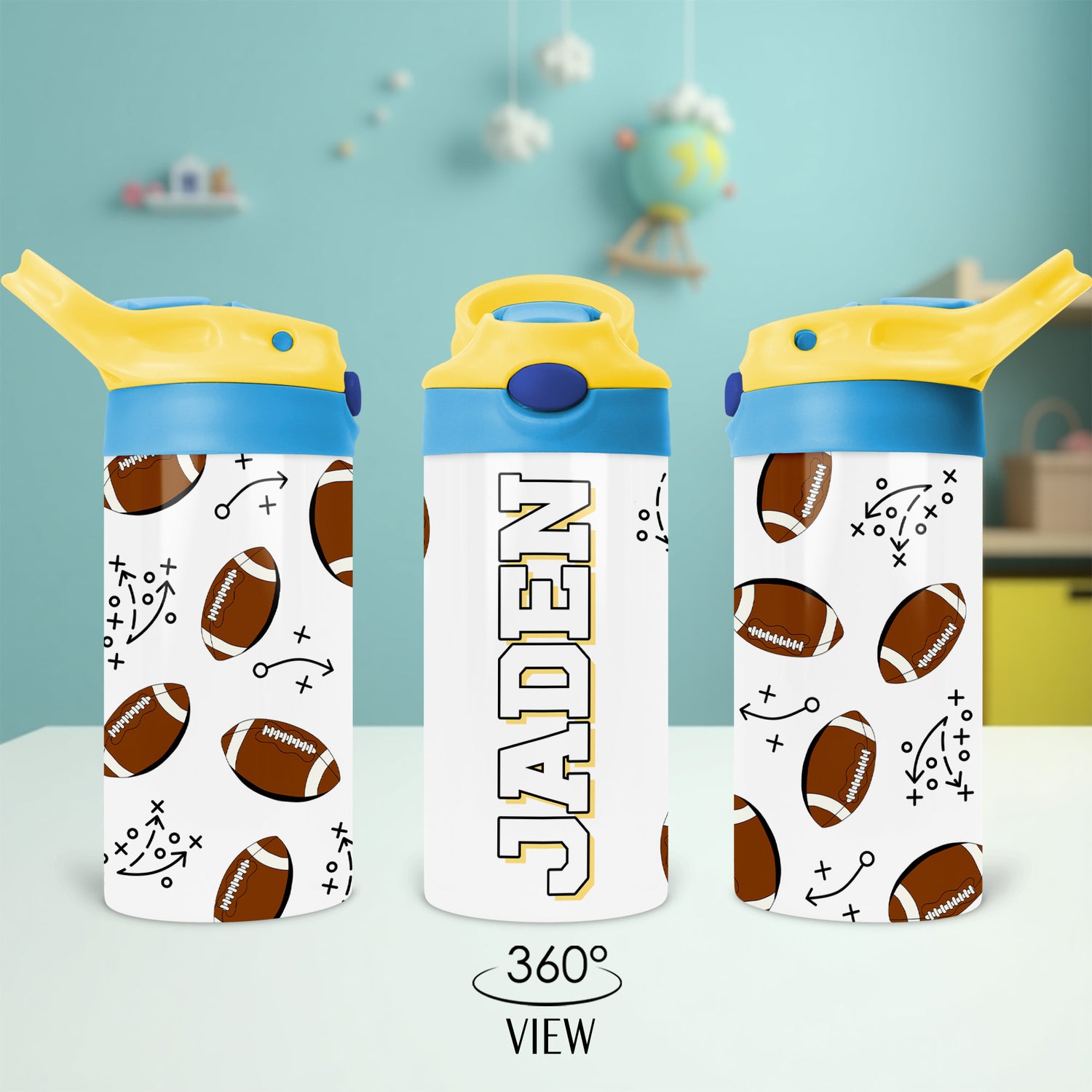 Football Sippy Water Bottle with Name, Back to School Cup for Kids and Toddlers