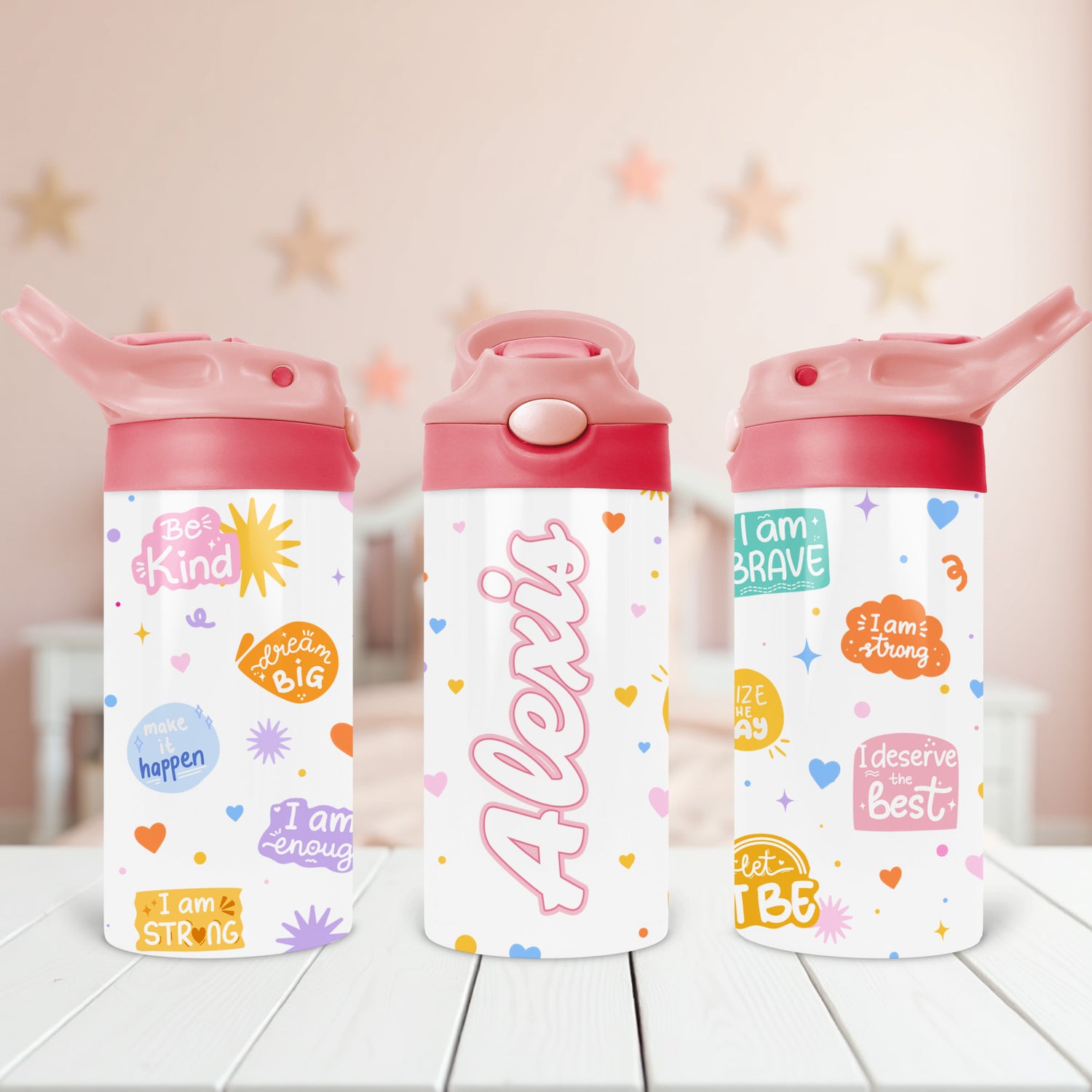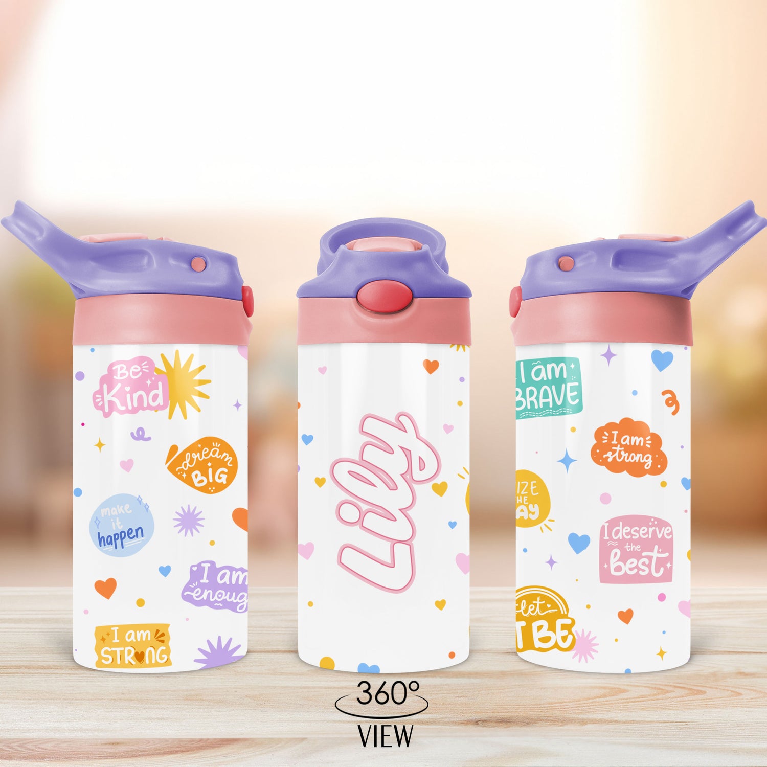 Girl Affirmation Water Bottle Personalized with Name, Positive Back to School Gift for Kids