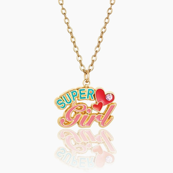 Girl Nation "Girl Power" Gold Necklace, made for Sensitive Skin - Super Girl is backordered and will ship as soon as it is back in stock.