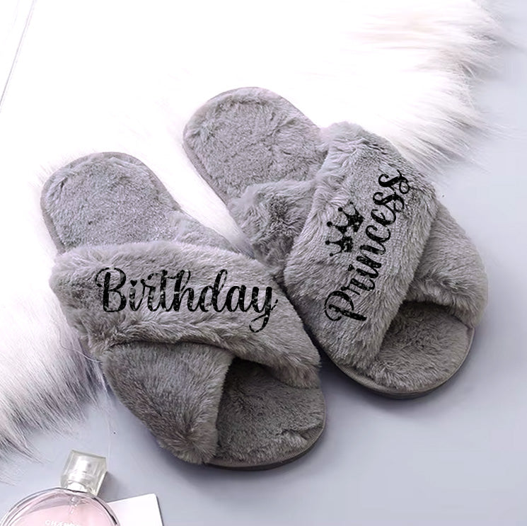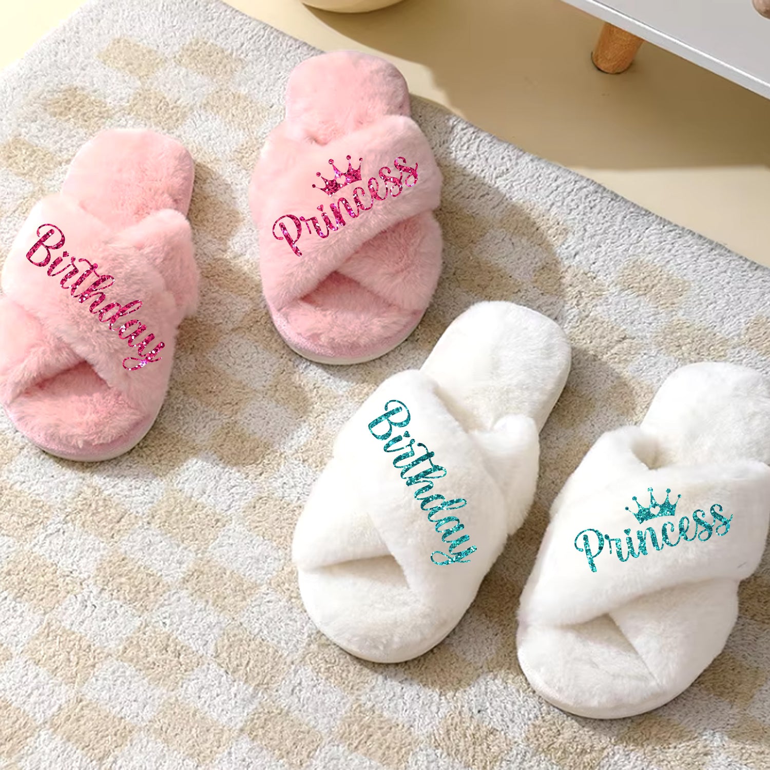 Glitter Birthday Princess Slippers for Girls, Cute Sleepover Party Slippers, Birthday Gift for Kids