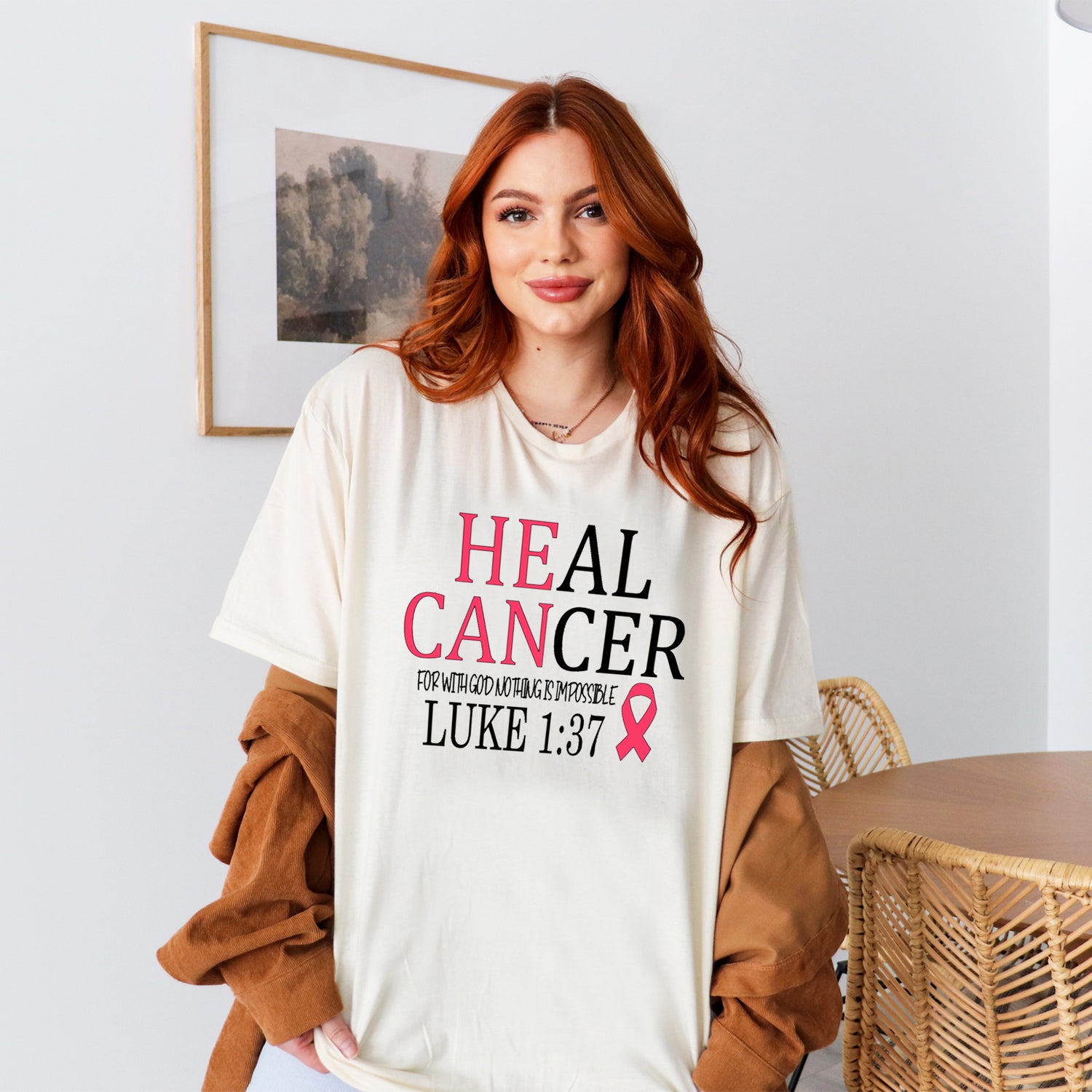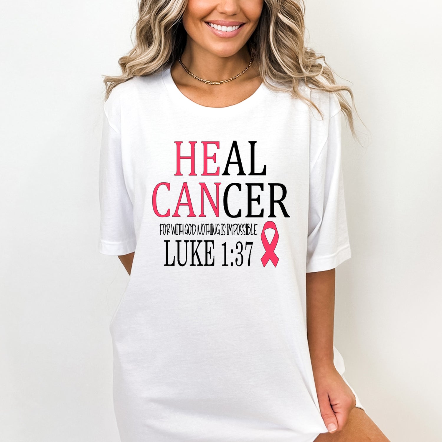 Luke 1:37 He Can Heal Cancer Breast Cancer Awareness Month TShirt