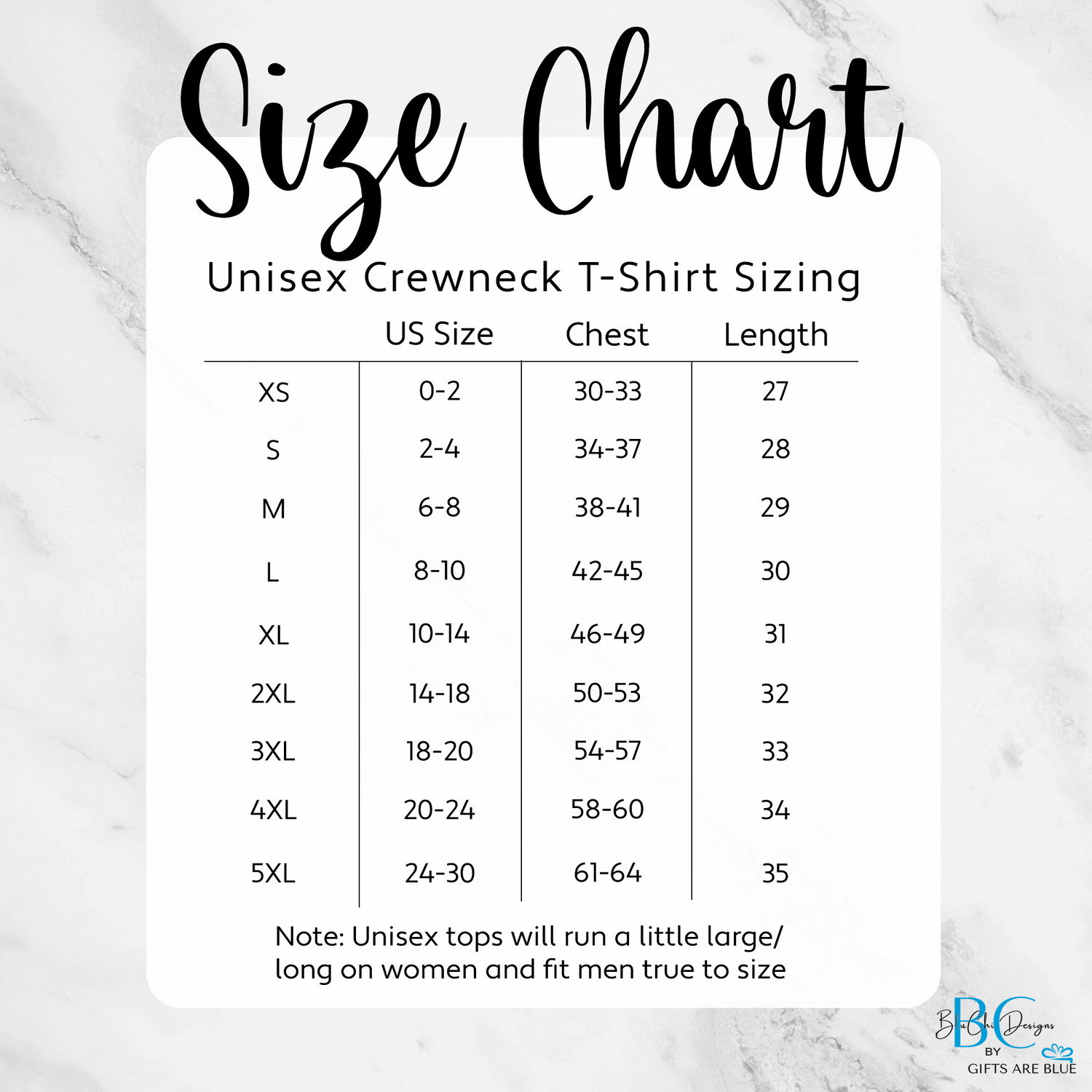 Crewneck T-Shirt Size Guide