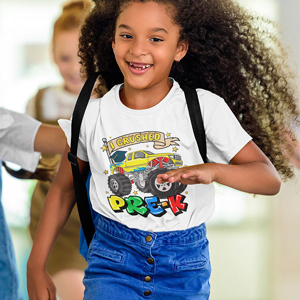 A fun and adorable t-shirt that can be worn for kindergarten, back to school, or to celebrate Pre-K graduation. Build confidence with this unisex design. Great first day of kindergarten shirt for boys and girls. After all, they did crush Pre-K!