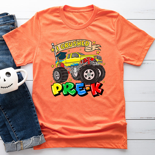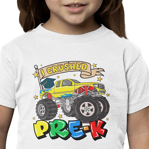 Cute I Crushed Pre-K Tshirts for Kids with Video Game Design - Crewneck TShirt / 2T is backordered and will ship as soon as it is back in stock.