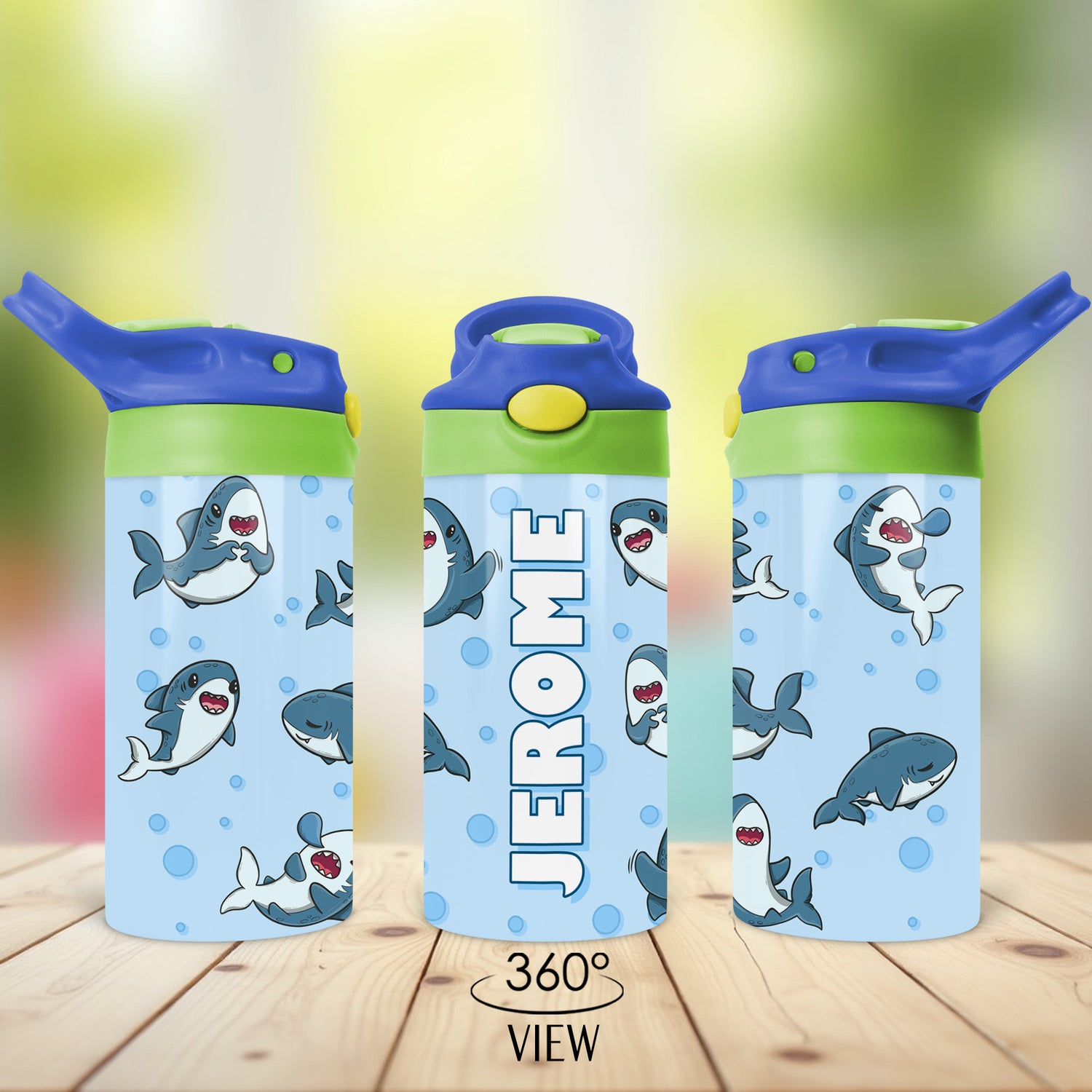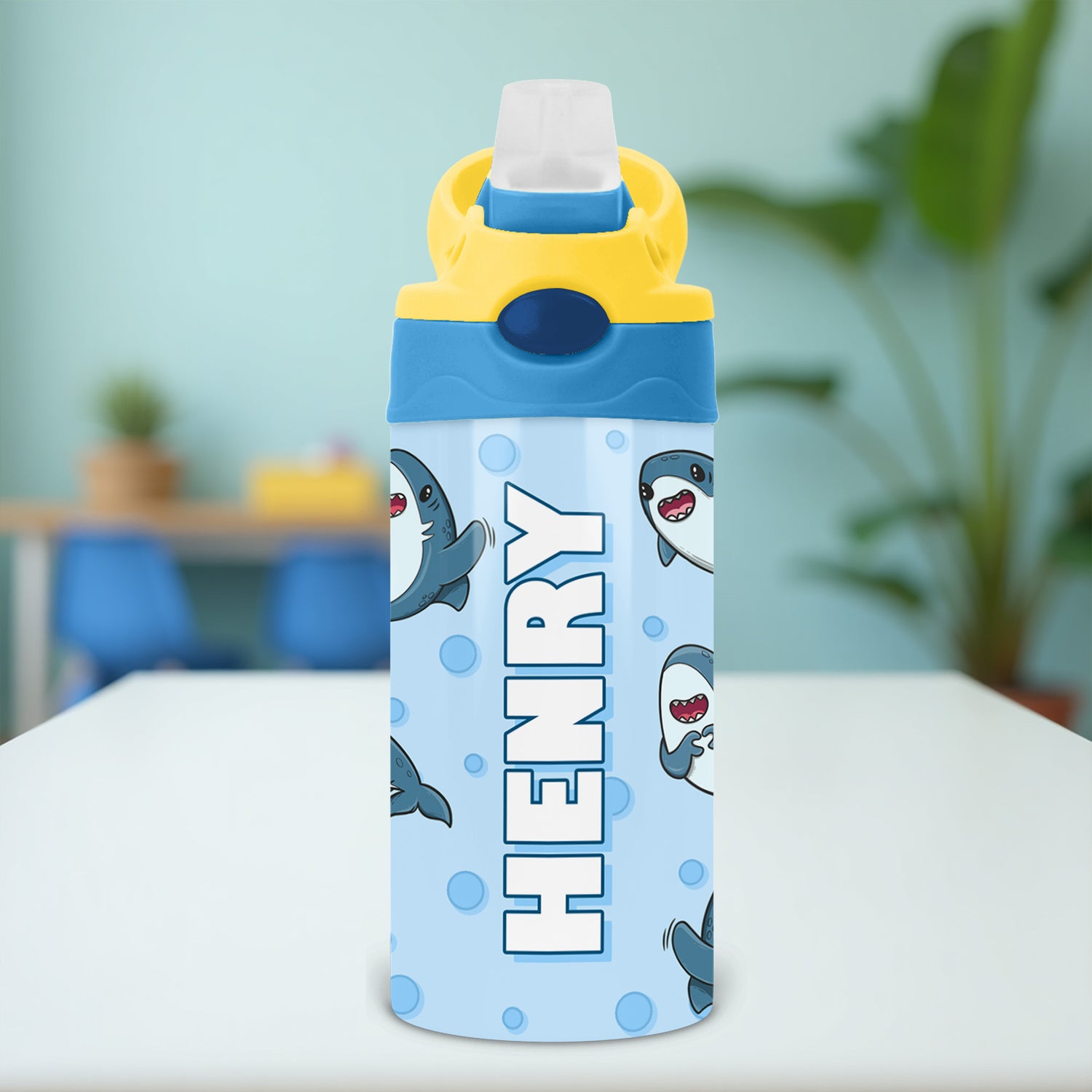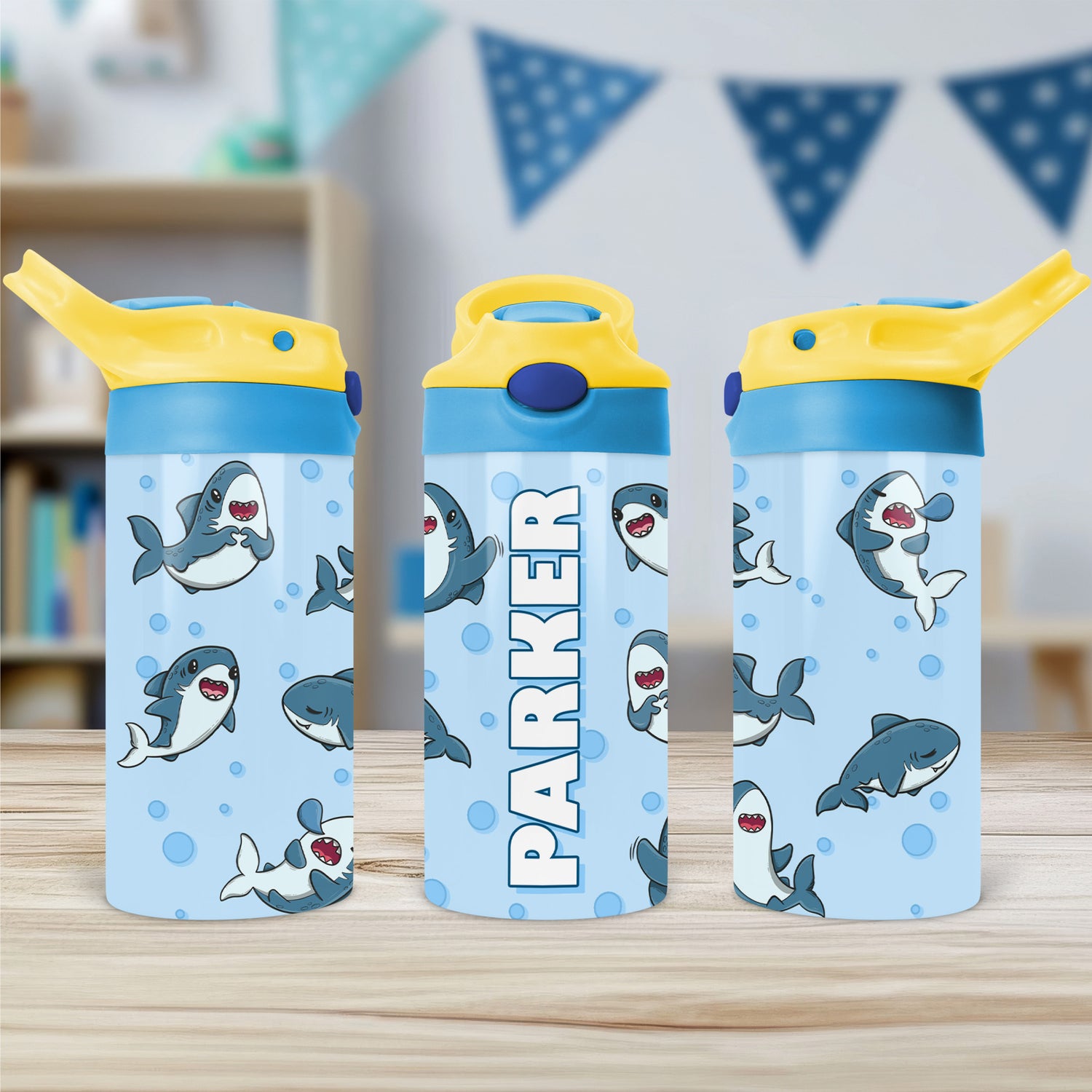 Kids Shark Water Bottle with Name, Personalized Cup for Back to School Gifts