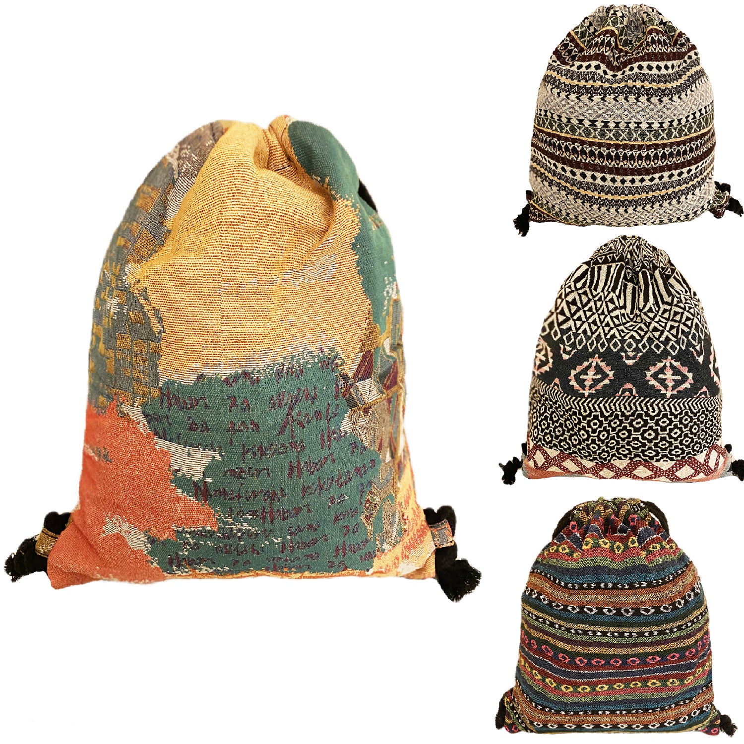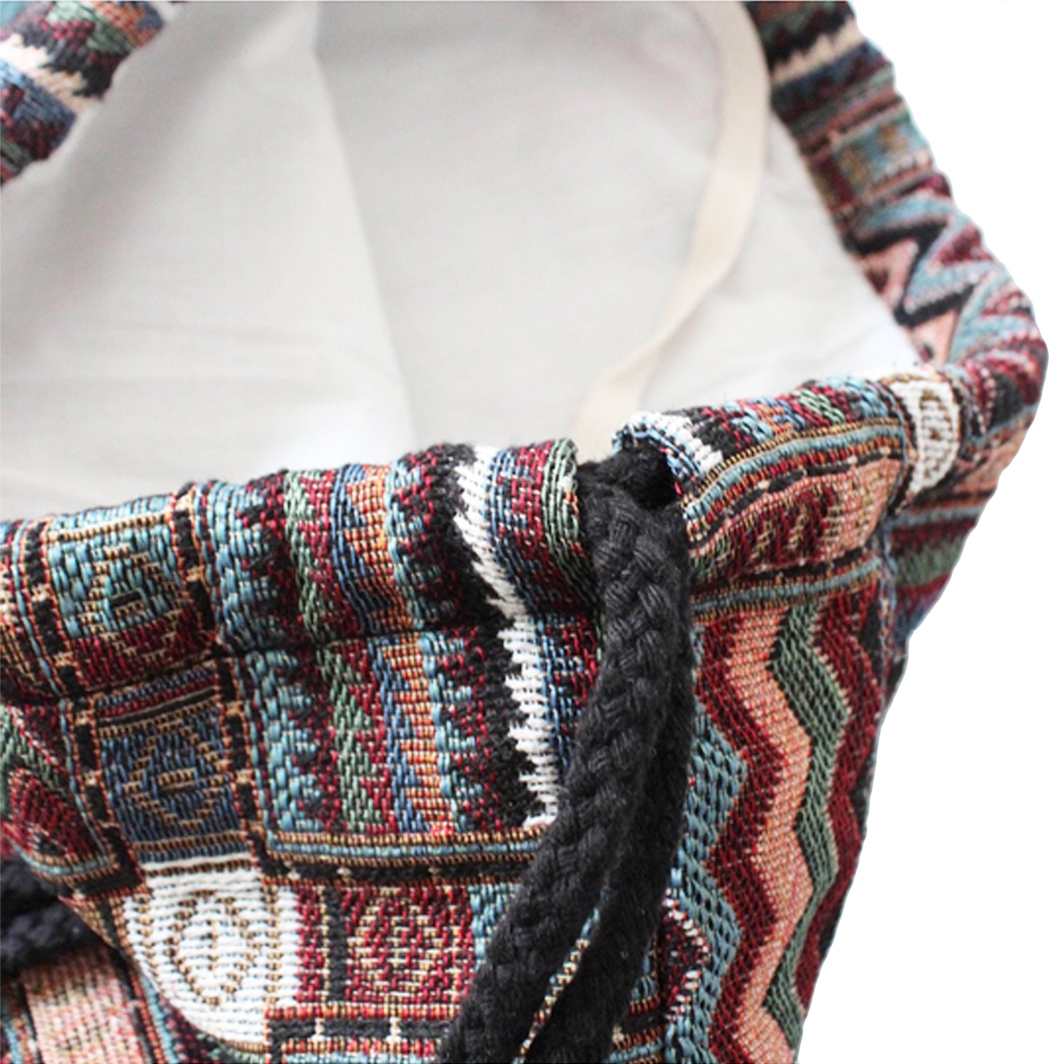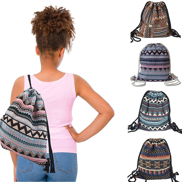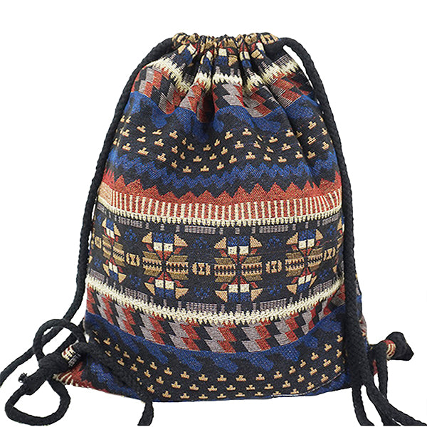 Lilyhood Boho Chic Fabric Drawstring Backpack with Ethnic Designs