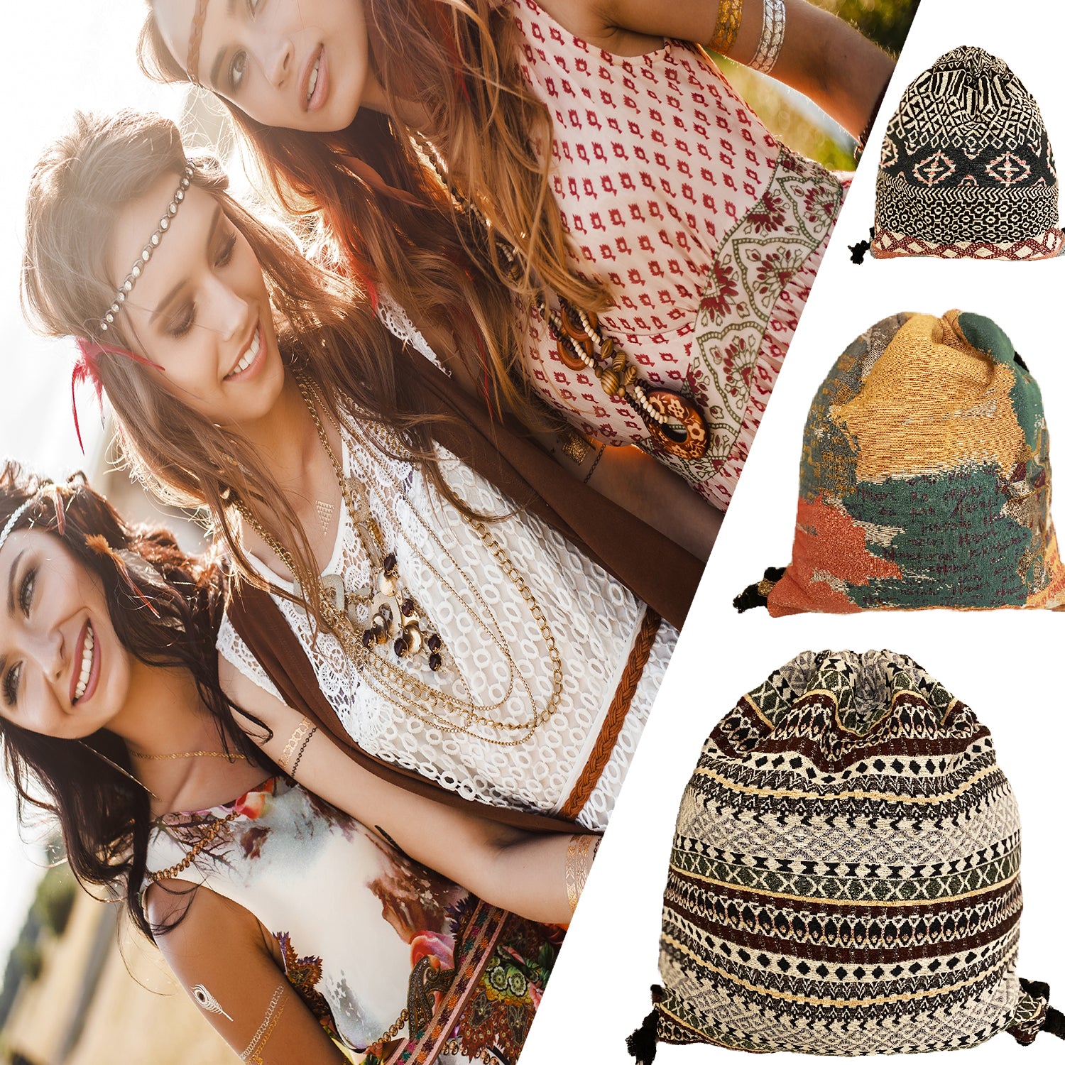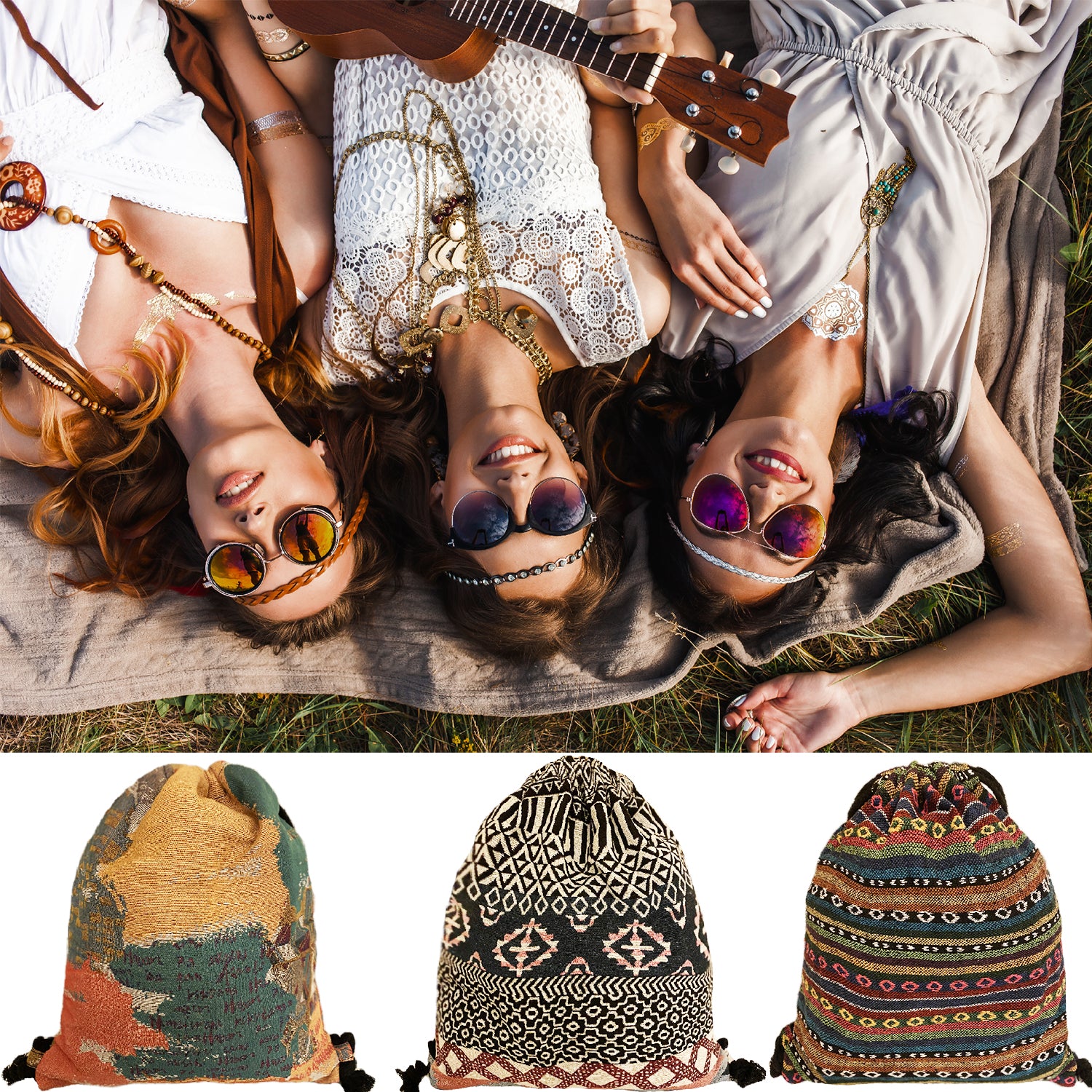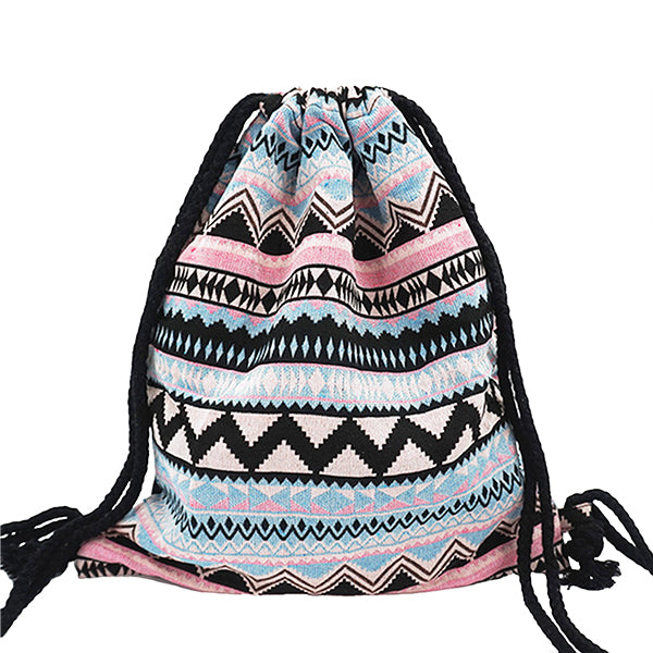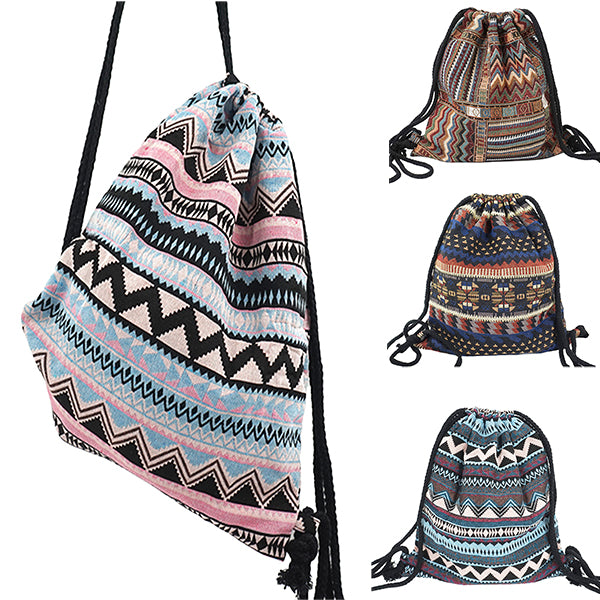Lilyhood Boho Chic Fabric Drawstring Backpack with Ethnic Designs