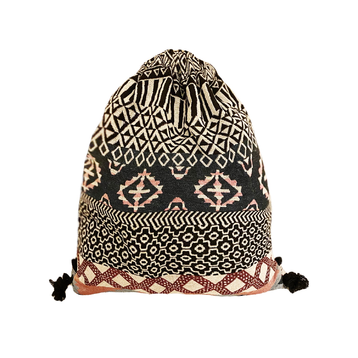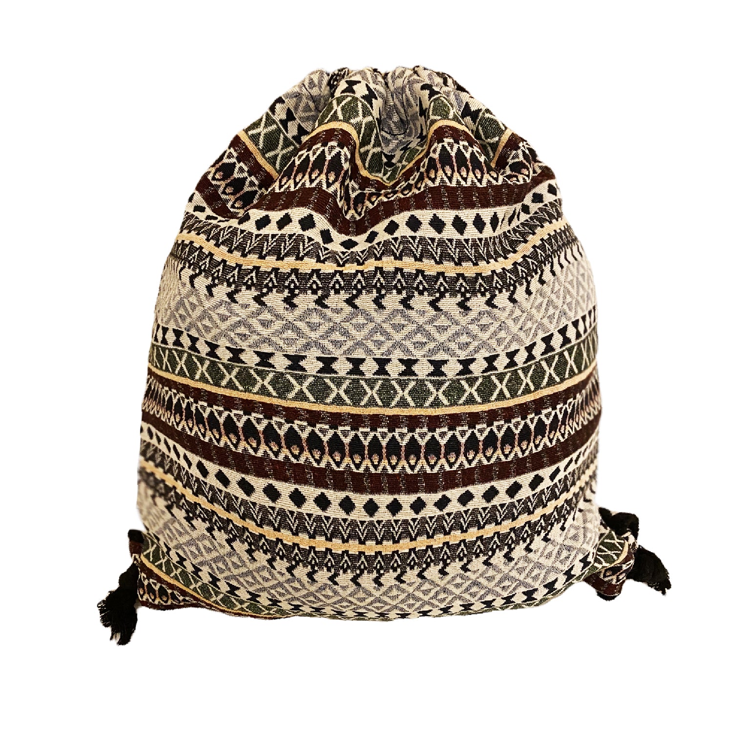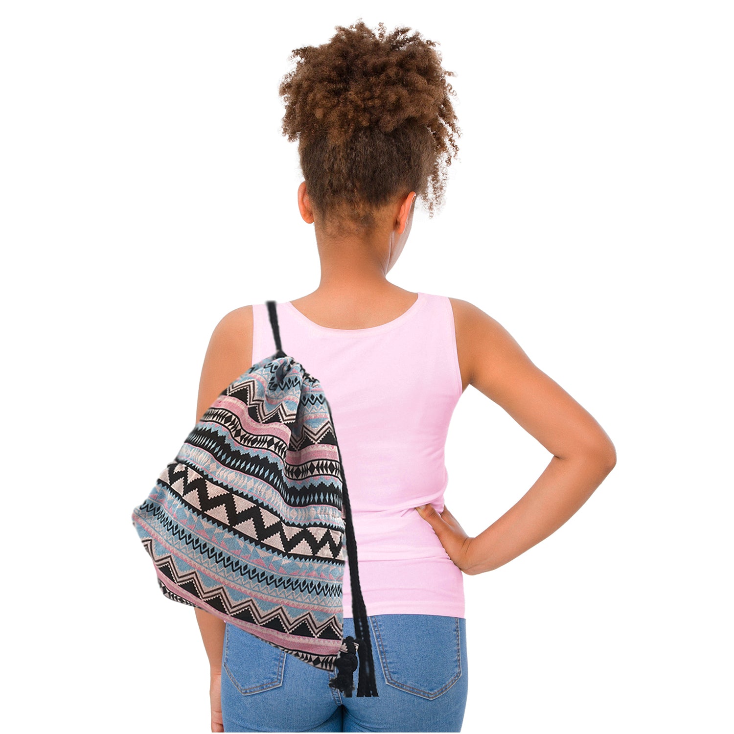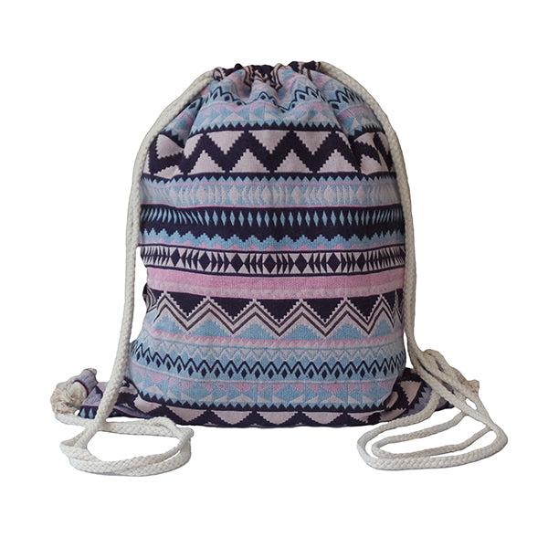 - Handcrafted drawstring backpacks by Lilyhood featuring trendy tribal ethnic designs