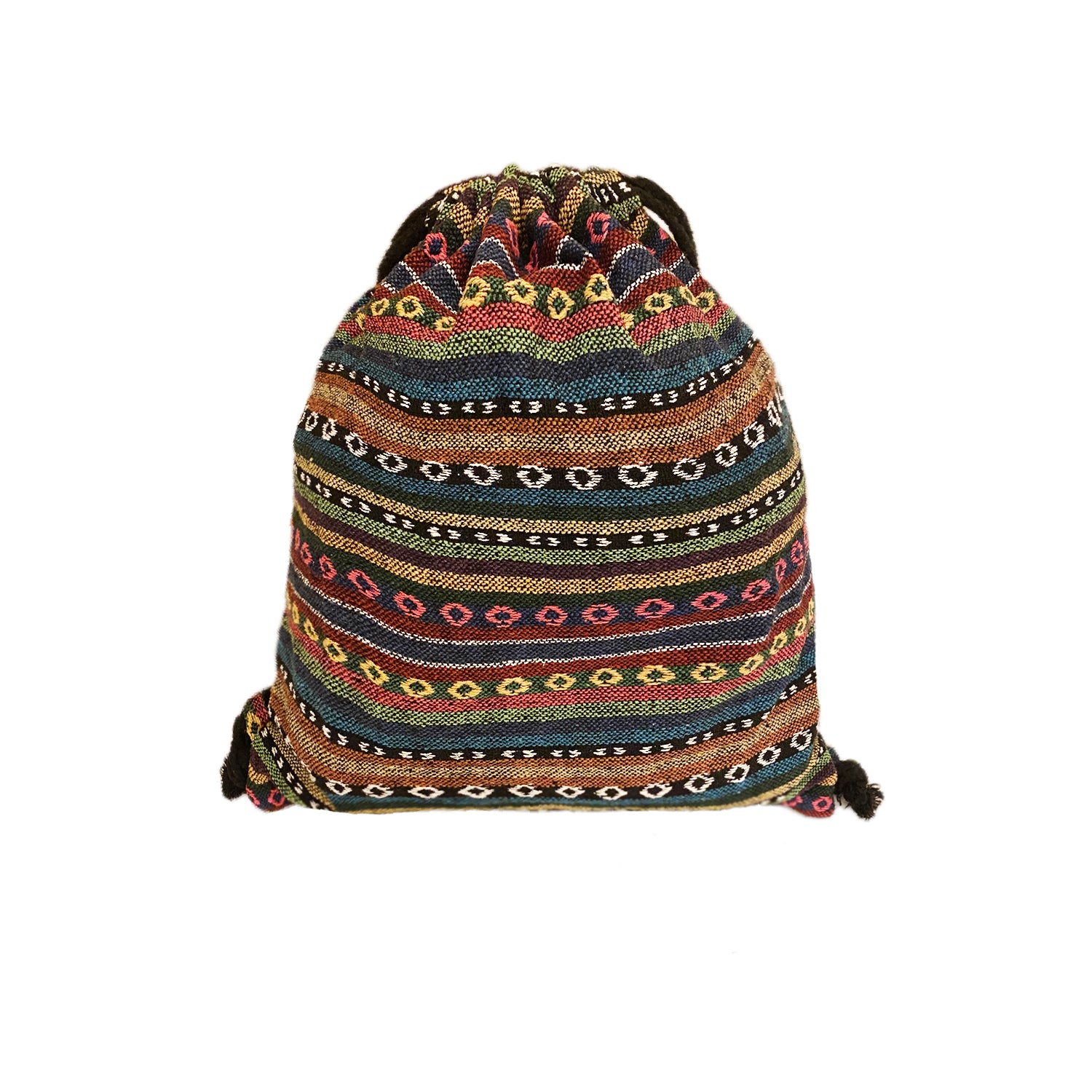 Lilyhood Boho Chic Fabric Drawstring Backpack with Ethnic Designs - LHB2 / Medium is backordered and will ship as soon as it is back in stock.