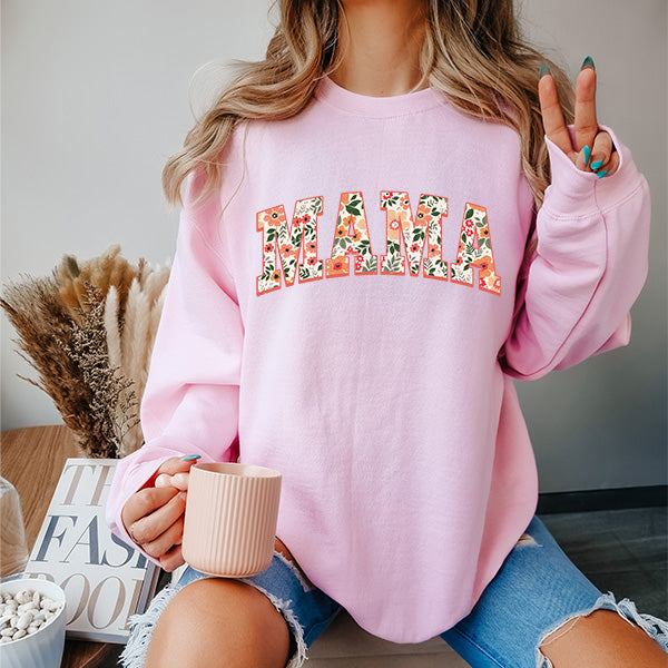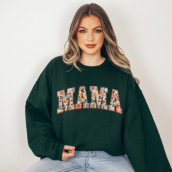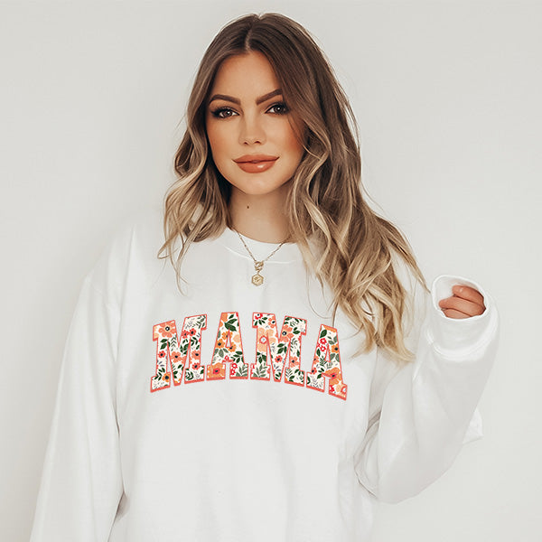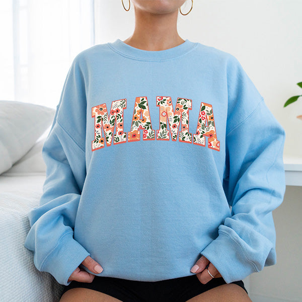 Whether it's for her birthday, Mother's Day, first Mother's Day, or as a thoughtful gift for an expectant mother, this sweatshirt is a perfect gift idea for mom, sister, grandma or aunt. Embrace the essence of motherhood with our Floral Mama Sweatshirt, a graceful expression of maternal love and style. Ideal for everyday wear or special occasions, this sweatshirt combines comfort with elegance. Featuring enchanting floral motifs, it adds a touch of femininity to any mom's wardrobe. Crafted with care from high-quality materials, it ensures both durability and softness against the skin. Let every mom showcase her nurturing spirit in style with this charming floral sweatshirt, celebrating the beauty of motherhood.