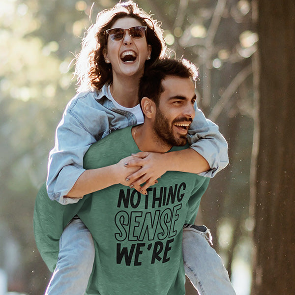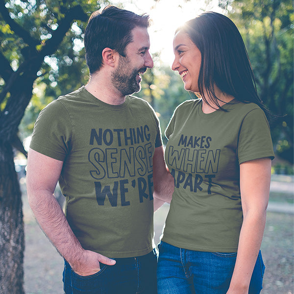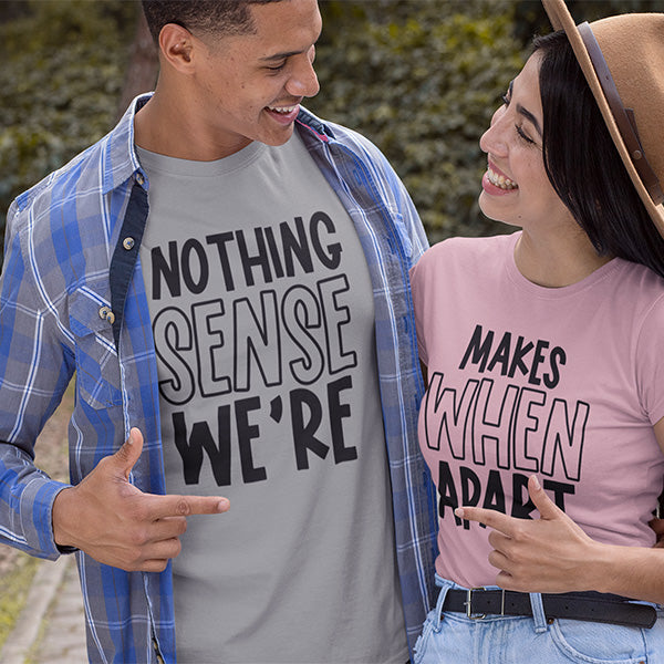 Funny couple shirts with the phrase 'Nothing Makes Sense When We're Apart'. A cute shirt for any occasion, whether it's couples game night, date night, honeymoon, anniversary etc.
