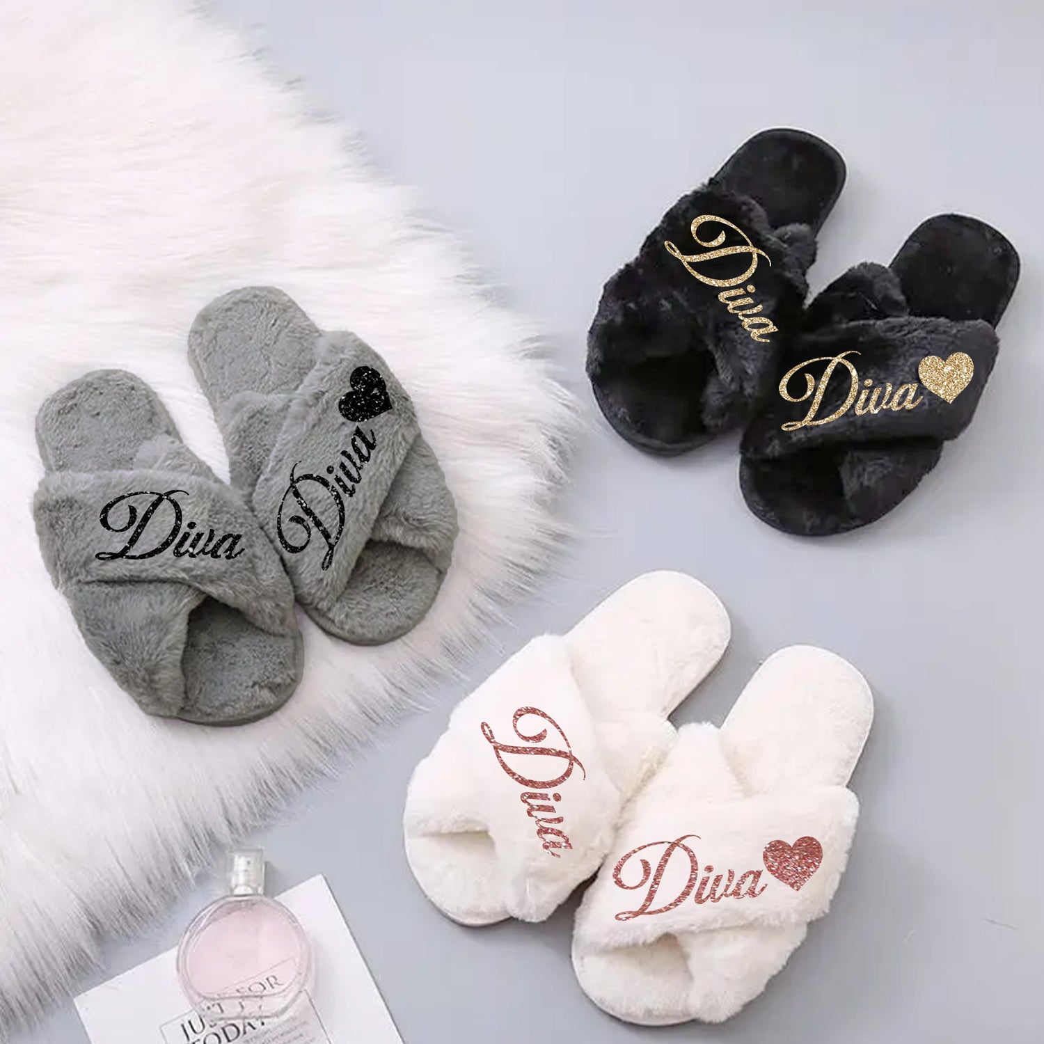 Matching Slippers for Mom and Daughter, Diva Fluffy Slippers for Mommy and Me, Gifts for Her
