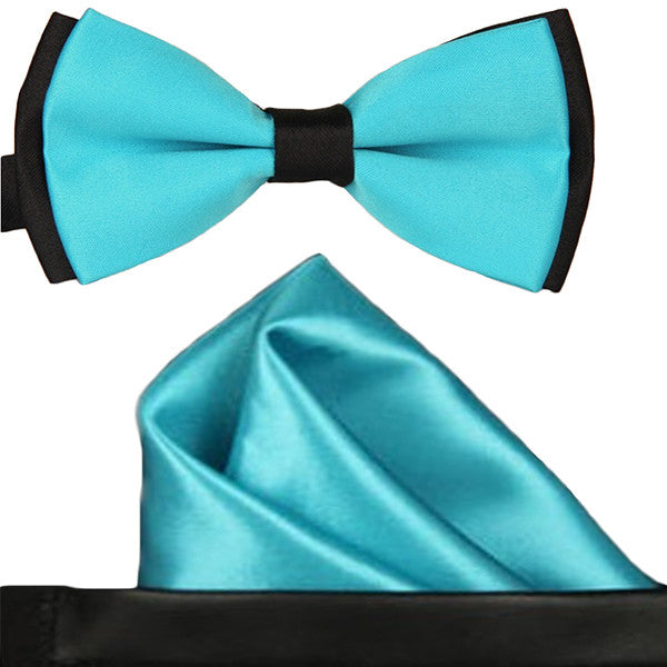 Mens Blue and Black Formal Event Pre-Tied Bow Tie and Pocket Square - Baby Blue is backordered and will ship as soon as it is back in stock.