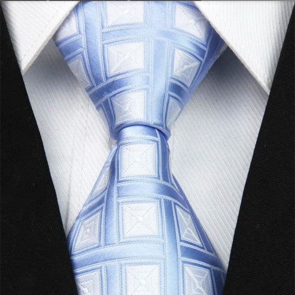 Mens Sky Blue Classic Plaid Tie, 4 Inches Wide Width