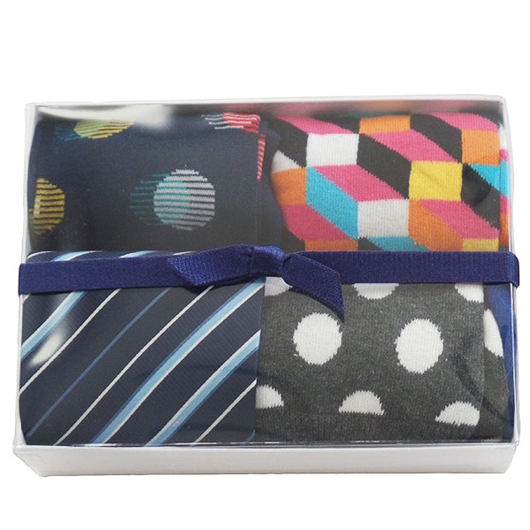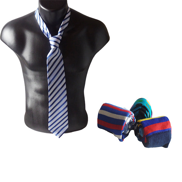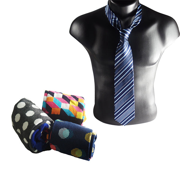 - Our gift set includes one of our 100% polyester neckties with three (3) unique pairs of colorful socks packaged in a beautiful gift box and bow. Socks may vary based on availability
