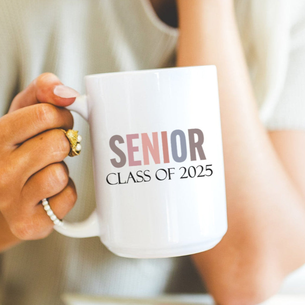Celebrate the Class of 2025 with our minimalist graduation mugs. This is the perfect graduation gift idea for seniors this year. Designed for both high school and college graduates, these sleek ceramic mugs are a stylish and practical way to honor their hard work and achievements. With a clean and modern “Class of 2025” design, this personalized graduation mug makes a meaningful keepsake for him or her.