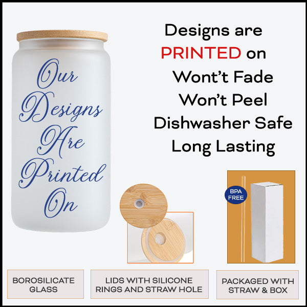 This glass tumbler is meticulously handmade and customized to your order specifications. Our glass cans boast a generous 16oz (355ml) capacity and come complete with a bamboo lid, featuring a silicone ring seal, a straw, and a box for convenient storage or gifting. Versatile in its usage, this tumbler is perfect for serving a variety of beverages, including juices, lemonade, iced tea, iced coffee, smoothies, ice cream sodas, cocktails, and much more. Whether used with or without the lid, it makes a thoughtful and personalized gift for occasions such as graduation. The design is printed directly onto the tumbler, ensuring durability and resistance to fading or peeling. Please note that each listing is for one tumbler, but if you wish to order multiples, simply add your personalization, then add to cart, and return to the listing to add another.