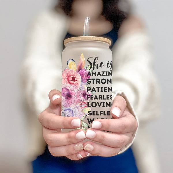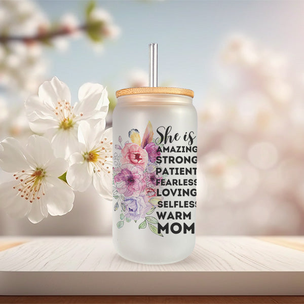 Elevate your mom's day with our Inspirational 16oz Glass Tumbler, a perfect birthday gift for her, Christmas Gift or Mother's Day gift that celebrates her strength and love. It's also an ideal gift for first-time mothers, offering encouragement and support during their journey into motherhood. Adorned with inspiring quotes and designs, this glass tumbler serves as a daily reminder of her importance and resilience. Whether it's for her morning coffee or evening tea, this stylish glass tumbler adds a touch of positivity to her routine. Give the gift of inspiration with our thoughtful glass tumbler, designed to brighten her day and warm her heart.