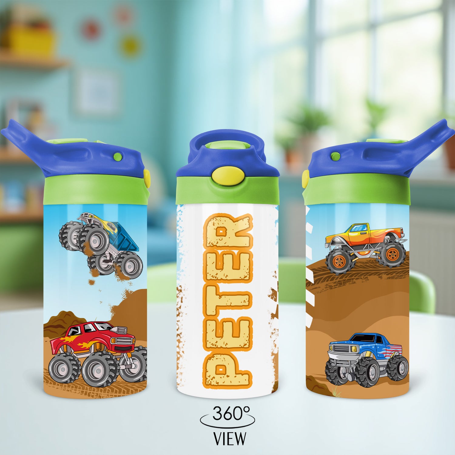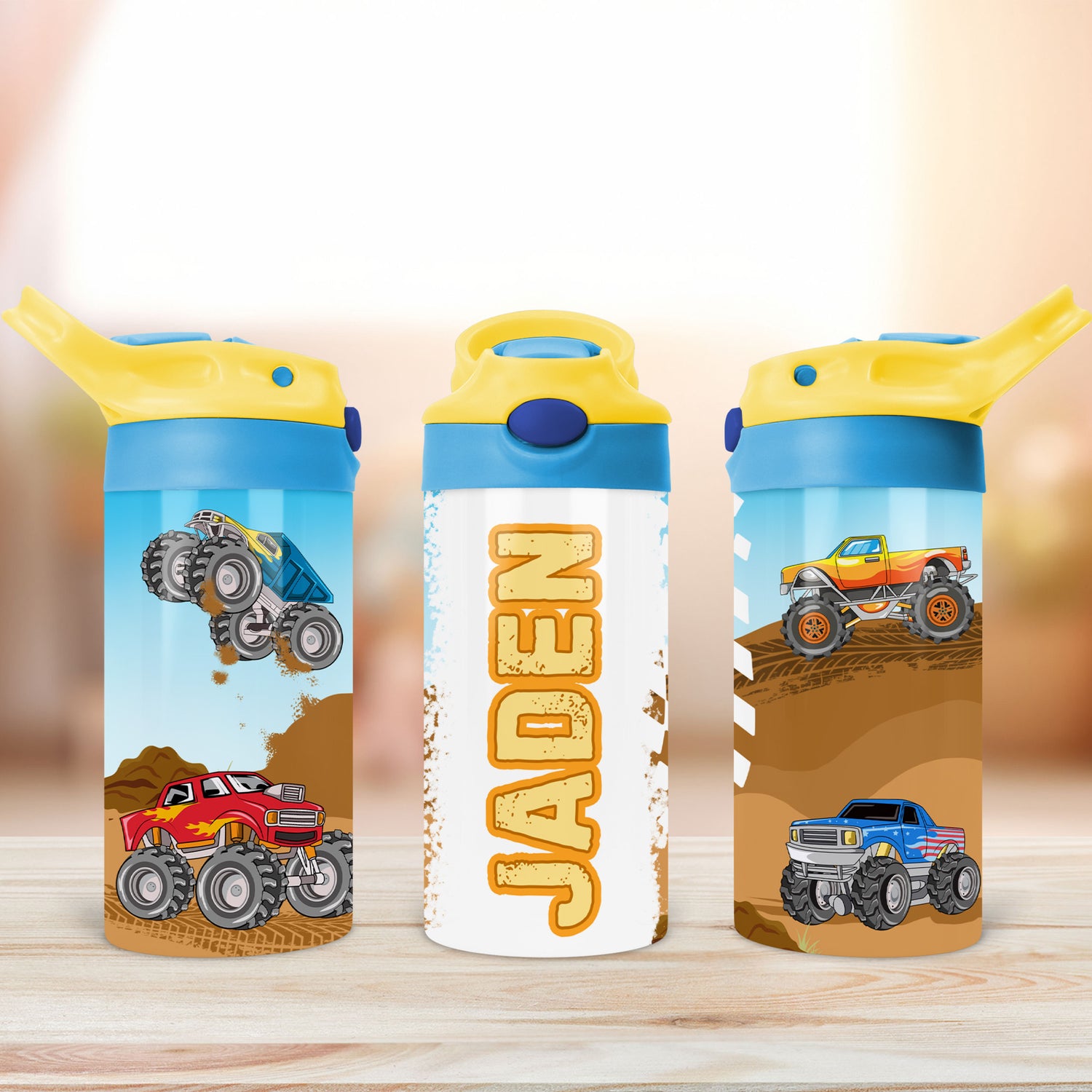 Monster Truck Custom Water Bottle for Kids, Personalized Back to School Gift with Name