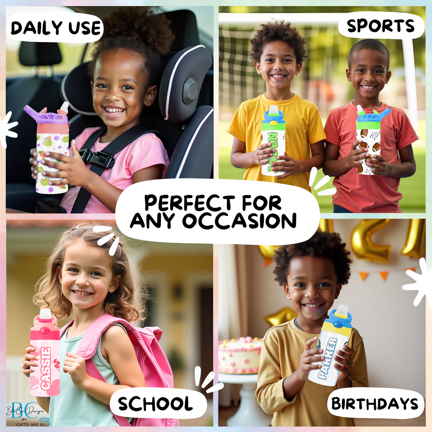 Ideal for lunch boxes, backpacks, and after-school activities, this water bottle with name is easy to carry and built for everyday use. It’s a unique and practical gift for birthdays, school events, or as a special surprise to kick off the new school year.