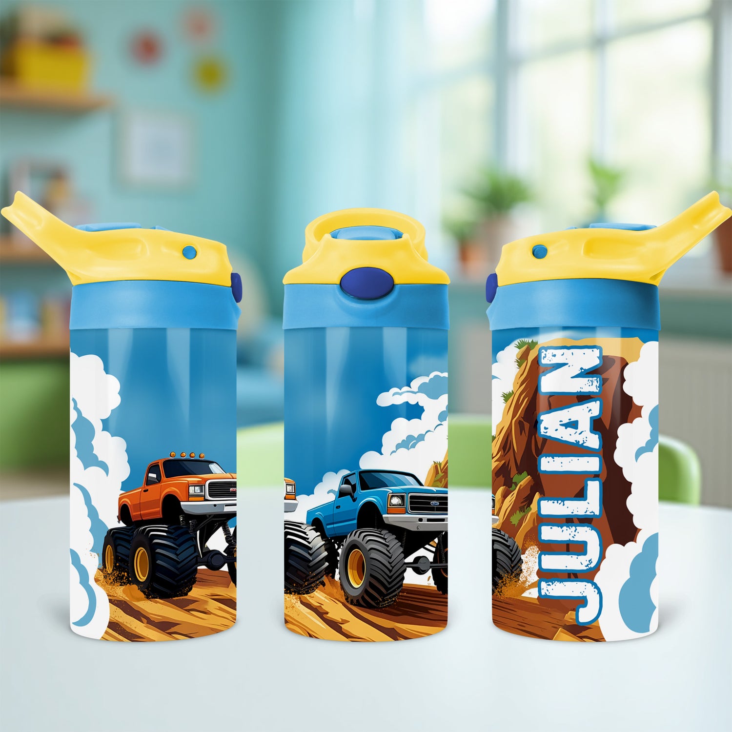 This custom water bottle for boys is lightweight, durable, and built to handle busy school days. Whether you're shopping for a monster truck water bottle with name, a personalized school water bottle, or a fun back to school gift for boys, this design delivers both style and function.