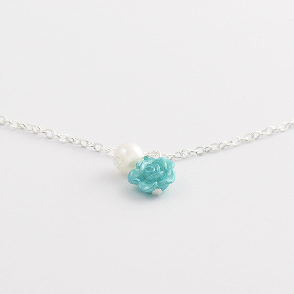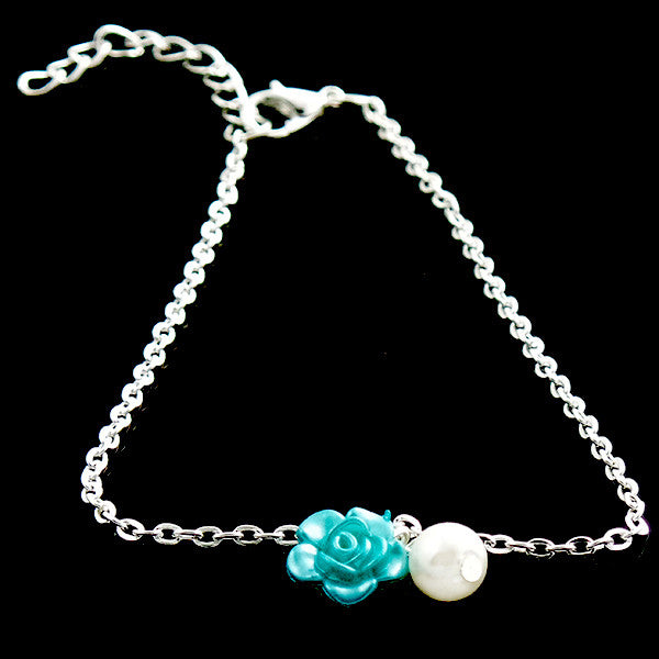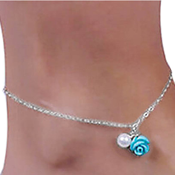 Ocean Blue Rose Anklet Jewelry with Pearl Drop