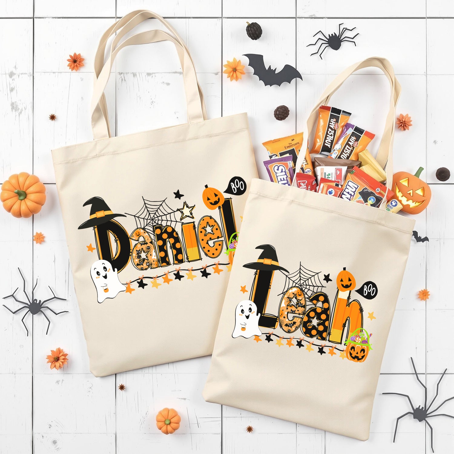 Orange and Black Alphabet Personalized Halloween Bag for Kids, Custom Trick or Treat Bags