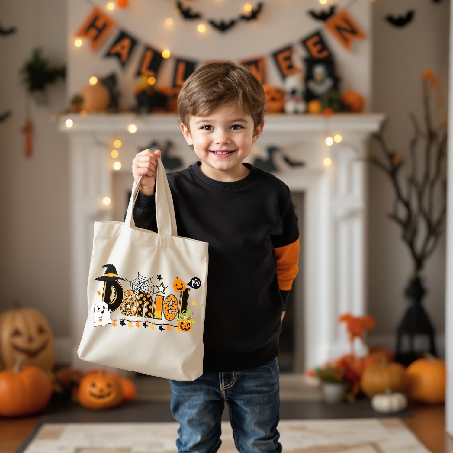 If you're looking for trick or treat bags, Halloween treat bags, or personalized Halloween gifts, these bags are sure to fit your needs. Choose the size that fits your little one’s candy haul just right and watch their face light up as they carry their very own custom Halloween treat bag.