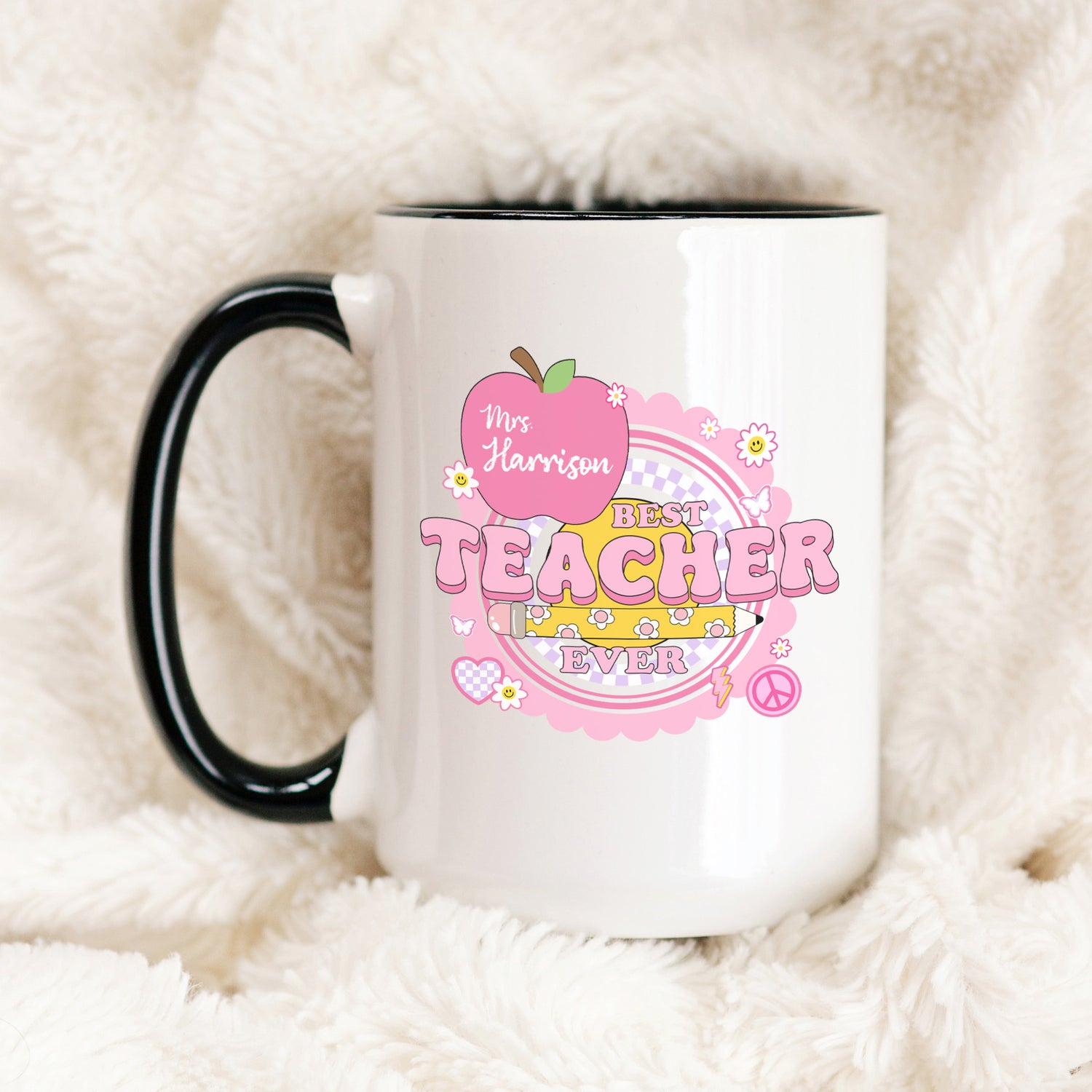 Personalized Best Teacher Ever Mug with Name, Pink Custom Cup for Teacher Appreciation - White / 11oz is backordered and will ship as soon as it is back in stock.
