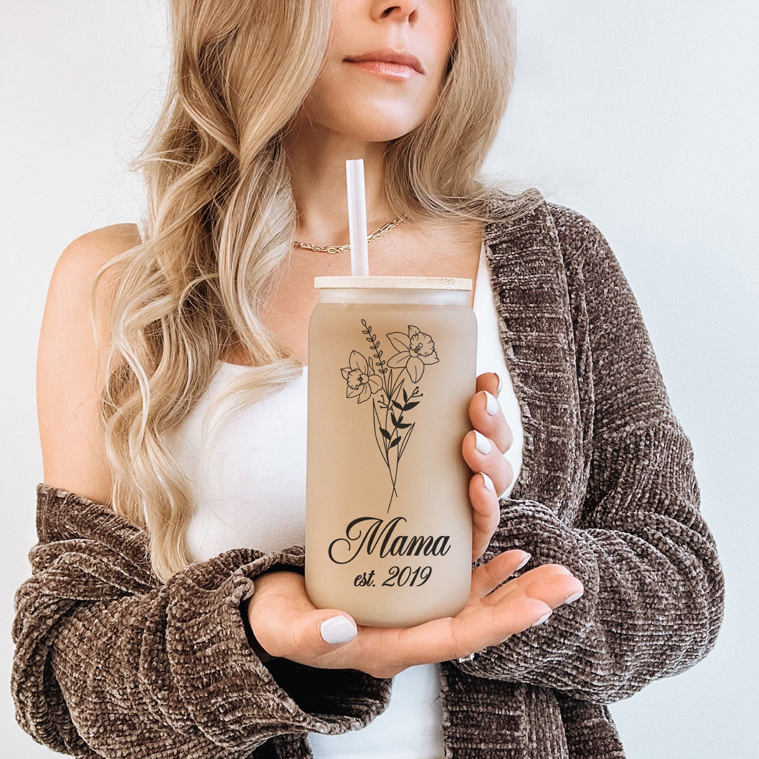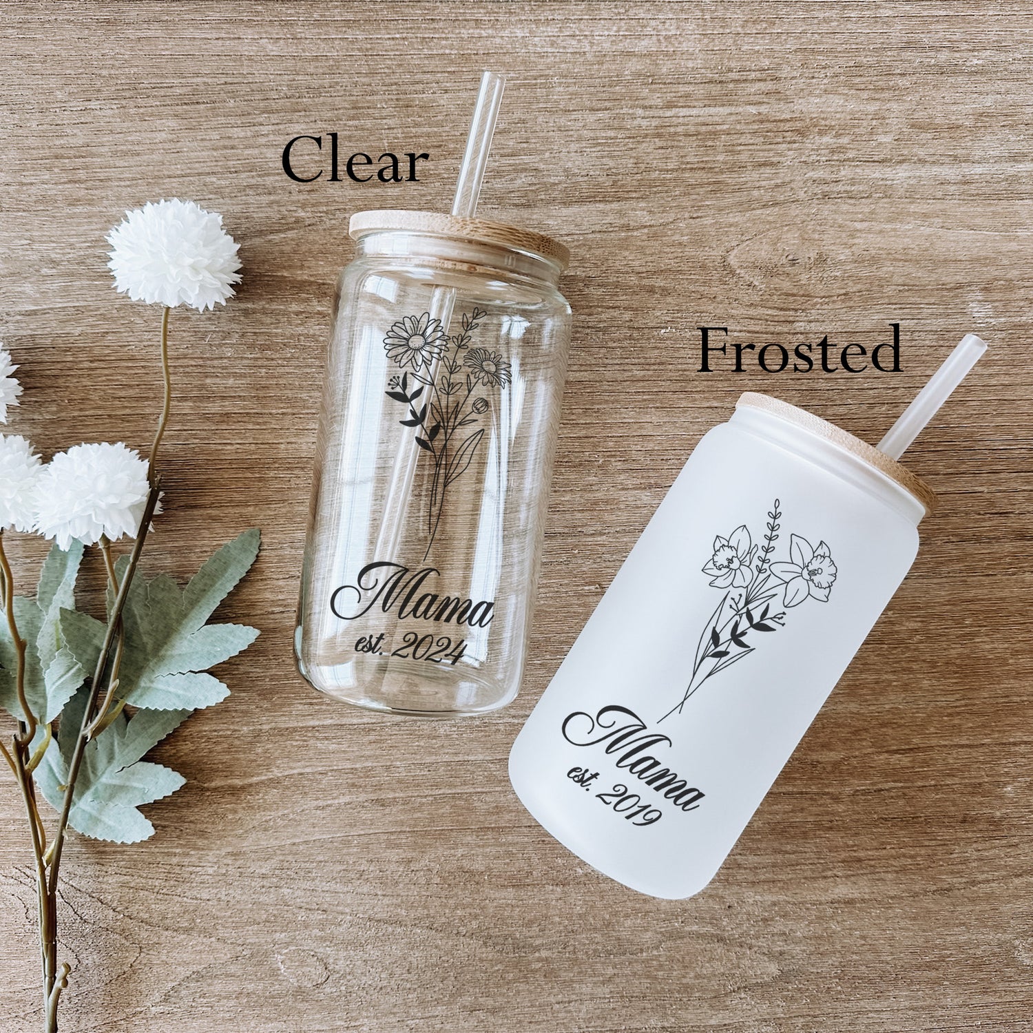 Surprise your loved mama with the perfect personalized gift – our Custom Birth Month Flower Glass Tumbler with Year is a beautiful and meaningful iced coffee cup that makes an unforgettable gift for mom, grandma, wife, or best friend. This personalized glass tumbler features a stunning floral design based on the recipient’s birth month flower, paired with a custom year, a bamboo lid and straw.