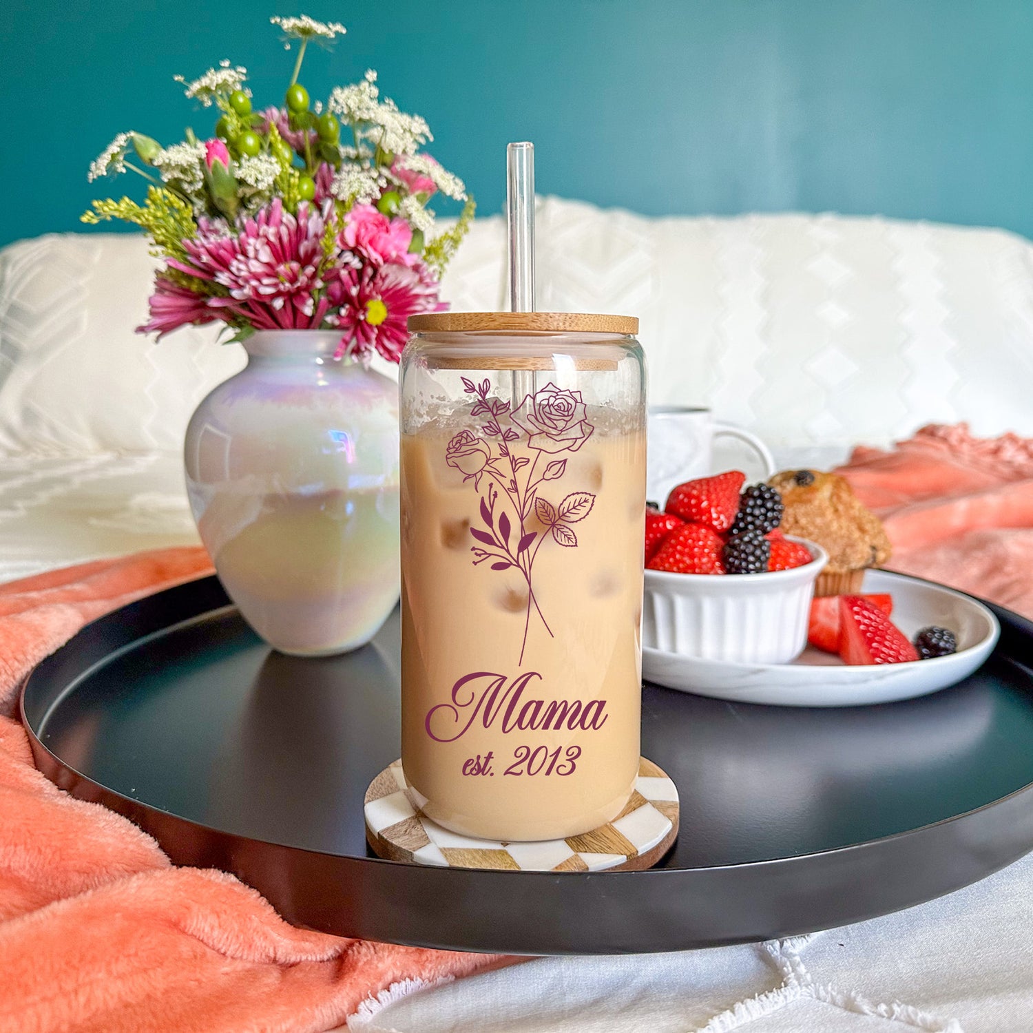 Ideal for Mother’s Day gifts, birthday gifts for mom, or anniversary gifts, this aesthetic iced coffee tumbler is perfect for enjoying cold drinks like iced coffee, iced tea, smoothies, or matcha lattes. Whether you're searching for unique Mother's Day gift ideas, a custom flower tumbler, or a personalized glass cup for her, this one-of-a-kind design offers a stylish blend of sentiment and practicality.