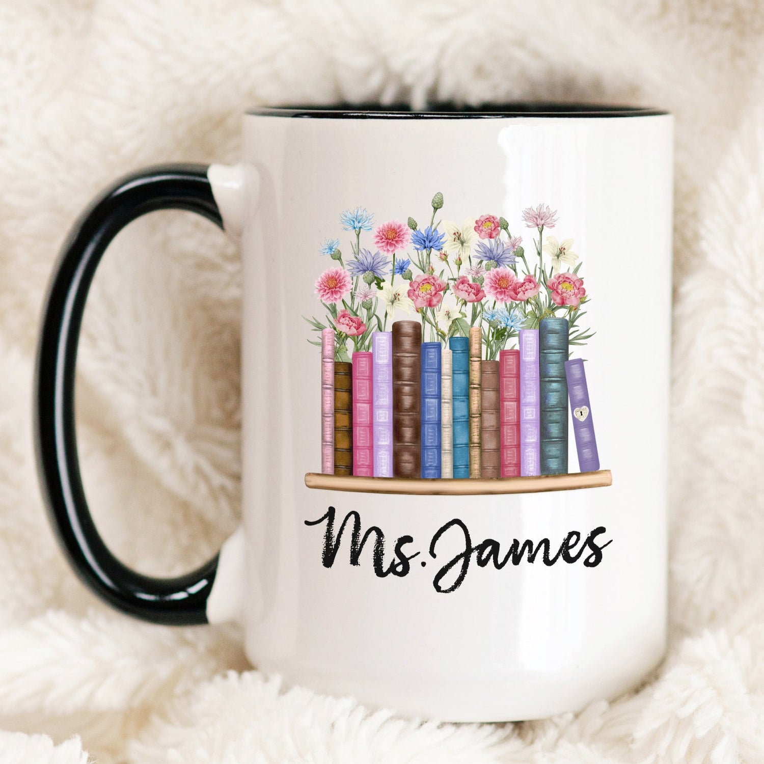 Personalized Boho Teacher Name Mug, Custom Floral Coffee Cup Birthday or Christmas Gift for Teacher